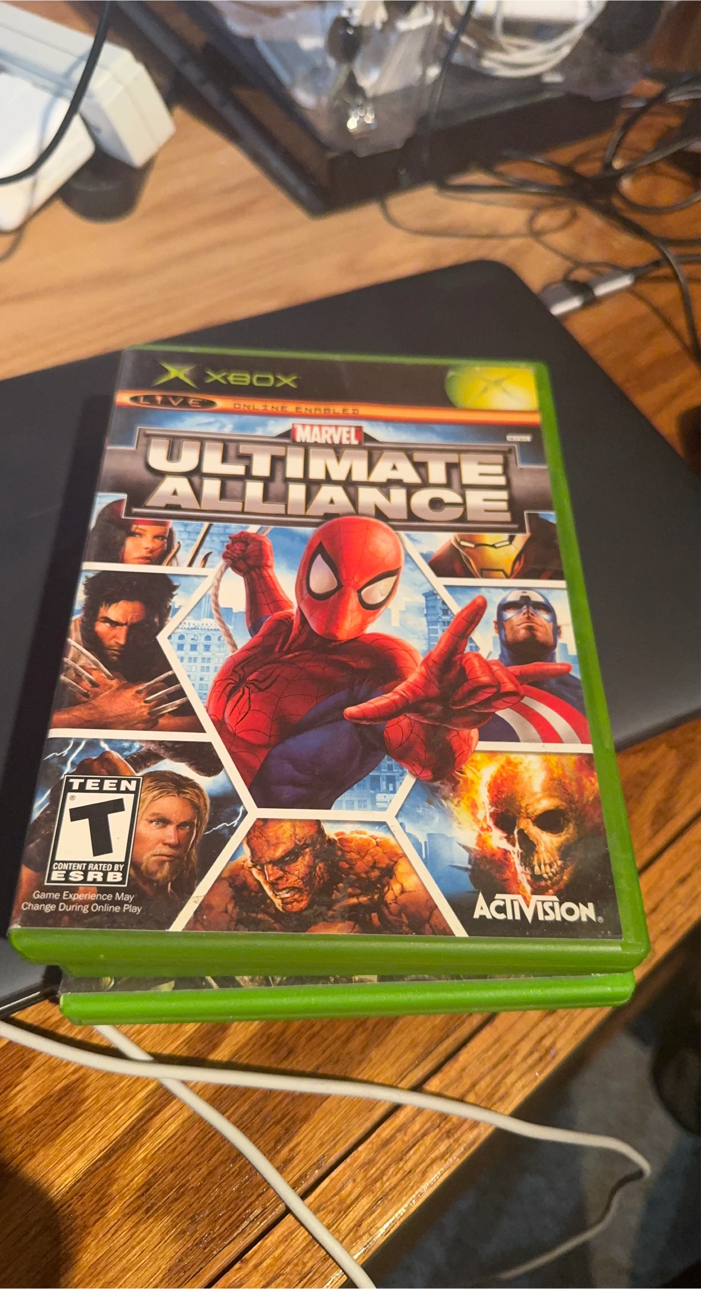 This is the Marvel Ultimate Alliance video game for Xbox. It's rated Teen and includes online play capabilities. The game features many popular Marvel superheroes.