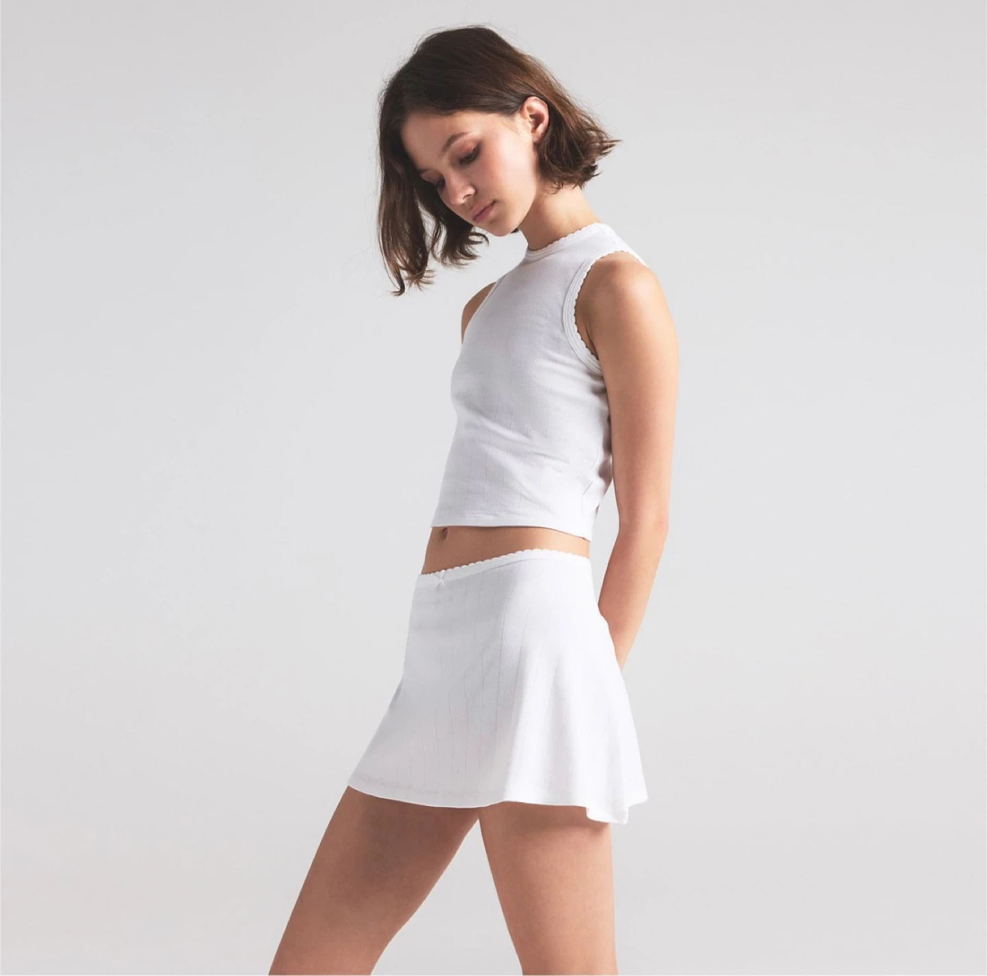 Skims White Drop Needle Pointelle Mini Skirt Size M
