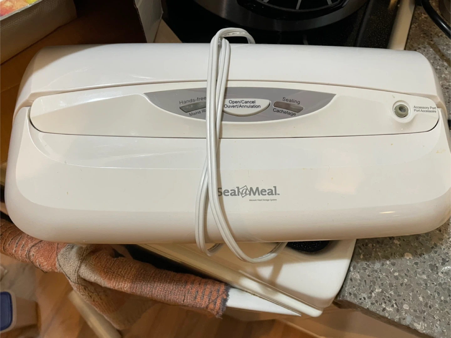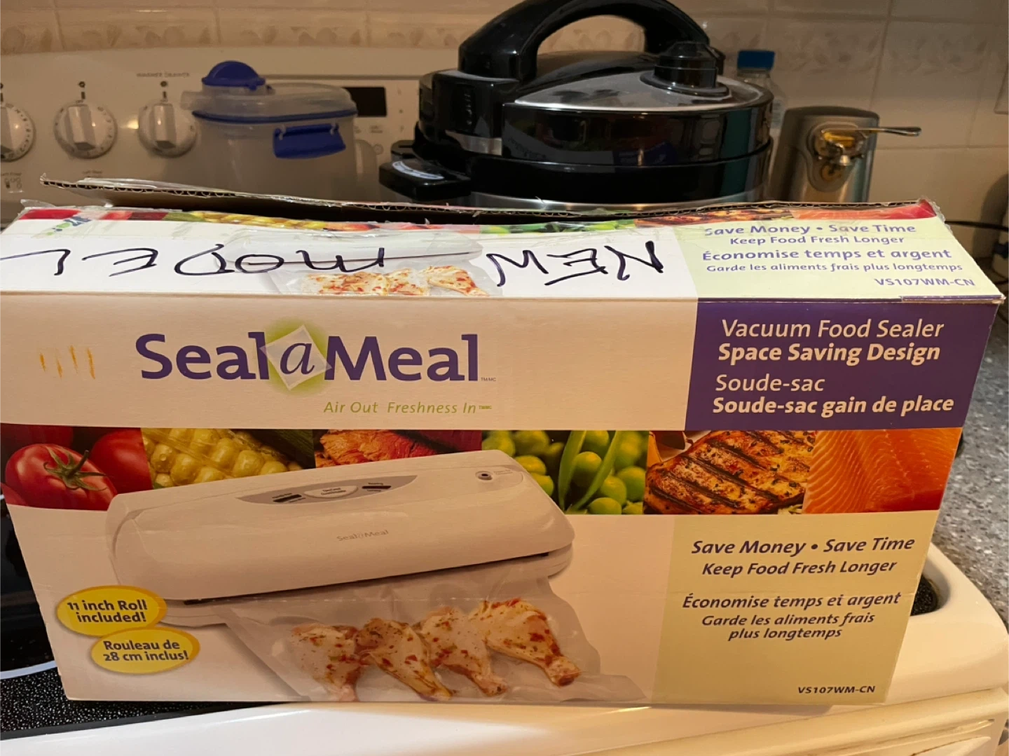 This Seal-a-Meal vacuum food sealer keeps food fresh longer. It includes an 11-inch roll and additional rolls of vacuum sealing bags. Great for preserving ingredients and leftovers!