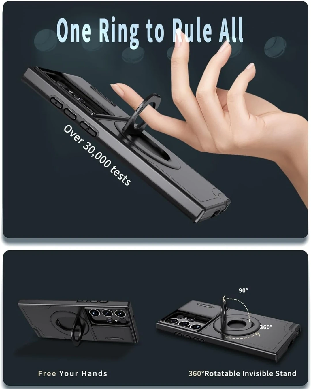 Galaxy S23 Ultra/S22 Ultra Magnetic Case,Compatible with Magsafe with Military Grade Drop Protection Built-in Rotate Ring Holde Kickstand Case for Galaxy S23 Ultra/S22 Ultra-Black