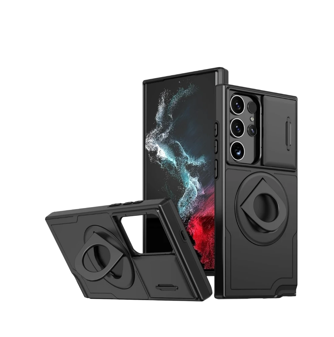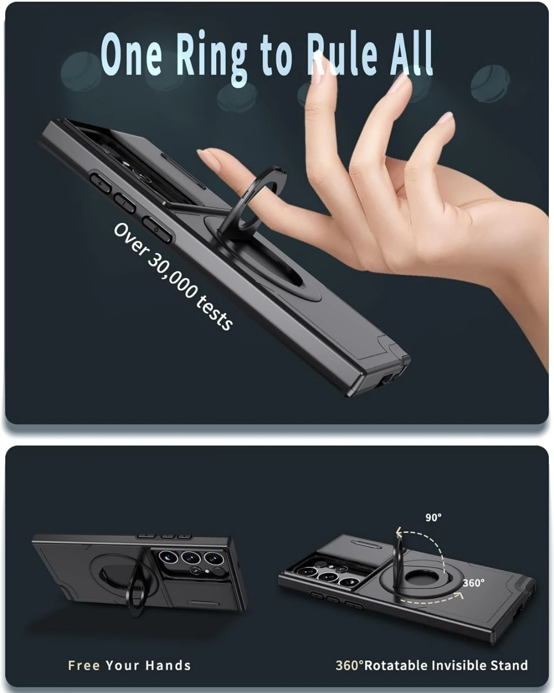 S23 Ultra Black Heavy Duty Phone Case with Ring Stand