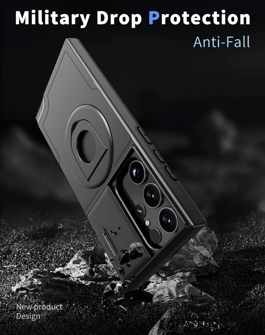 Galaxy S23 Ultra/S22 Ultra Magnetic Case,Compatible with Magsafe with Military Grade Drop Protection Built-in Rotate Ring Holde Kickstand Case for Galaxy S23 Ultra/S22 Ultra-Black