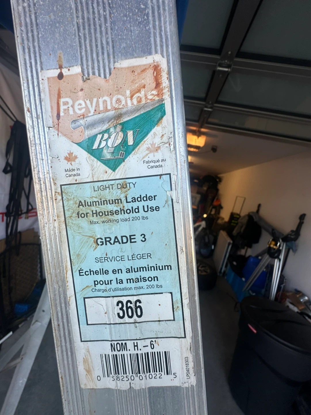 Buy & SellReynolds Aluminum Ladder for Household UseReynolds Aluminum Ladder for Household Use$25Light duty aluminum ladder made in Canada. Maximum working load is 200 lbs. It's Grade 3. This ladder includes a blue tray accessory.ConditionGoodWHERE TO MEETCheck LocationView MapSELLERverifiedAlQMillwill Selwyn650 reviews0 chats·0 favorites·1 viewsSEND CHAT TO SELLERHi AlQ! I’m interested in your listing.Hi AlQ! I’m interested in your listing.Get the Karrot app to chatSign In to chat