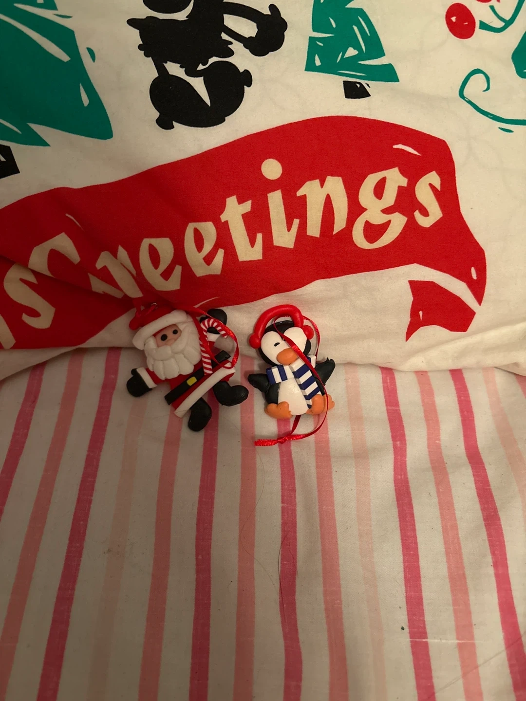 Set of 2 Christmas Ornaments - Santa & Penguin