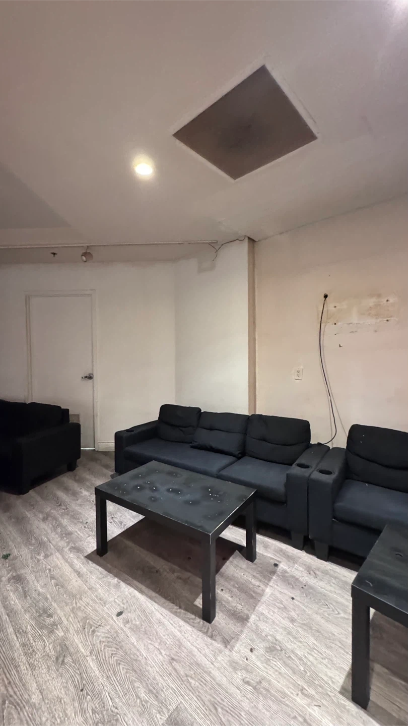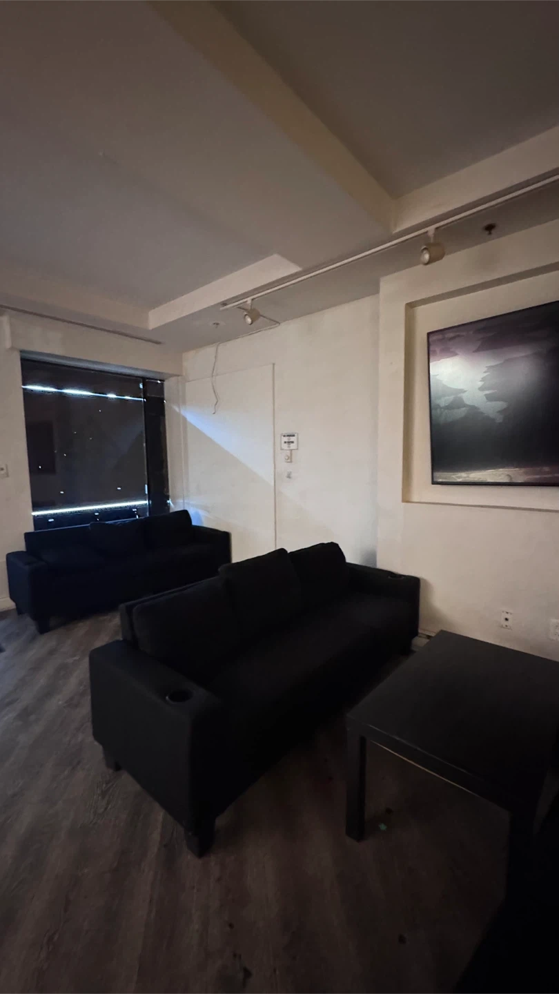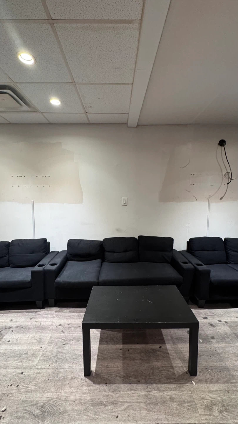 Selling a black sofa set. It's in great condition and would be perfect for a living room or common area. The set includes multiple sofas and a coffee table.