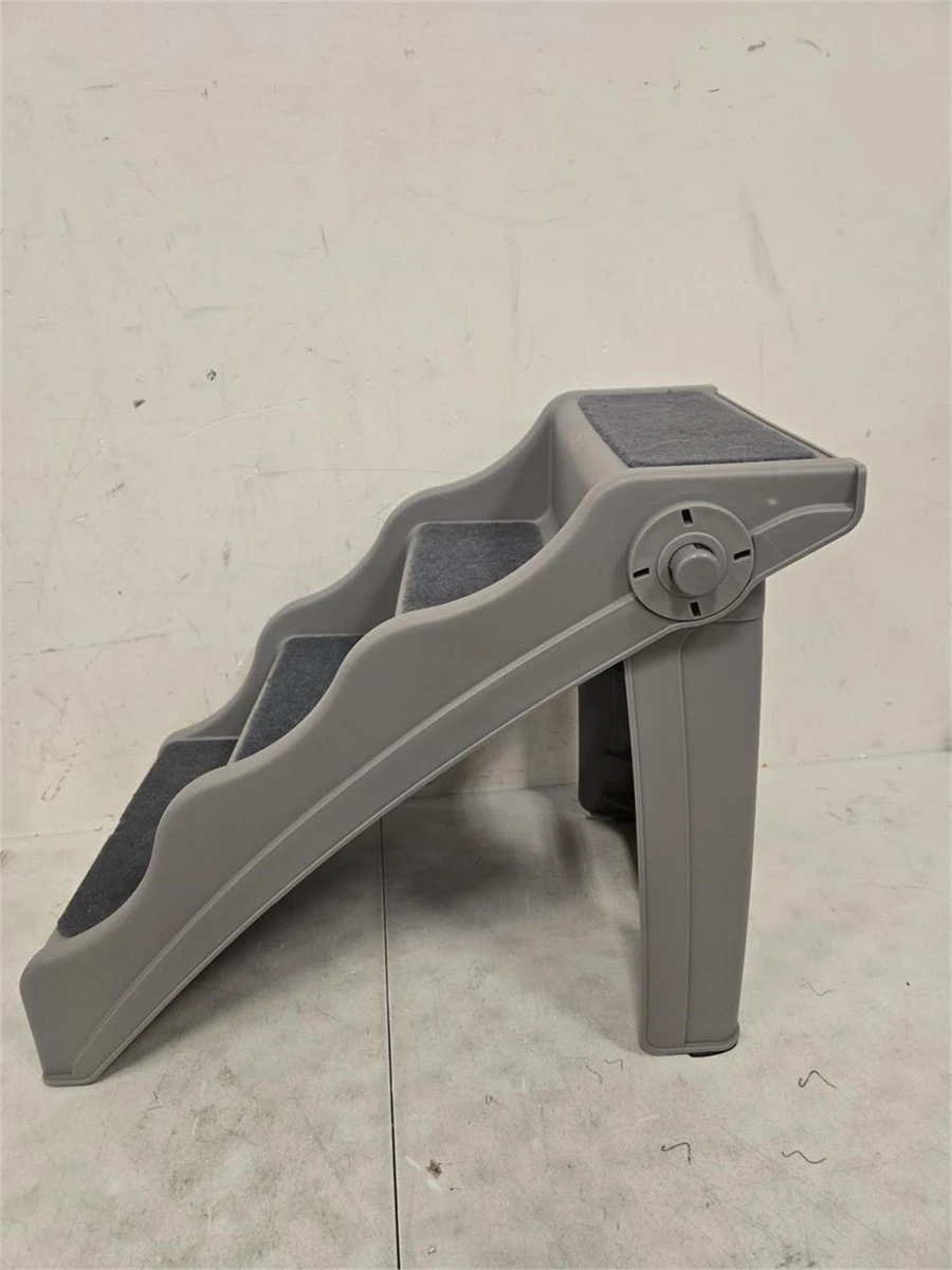 Four-step pet stairs for small to medium dogs. Features carpeted treads for traction and comfort. Great for pets with mobility issues to reach elevated surfaces.