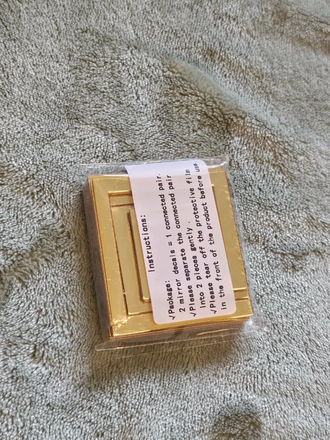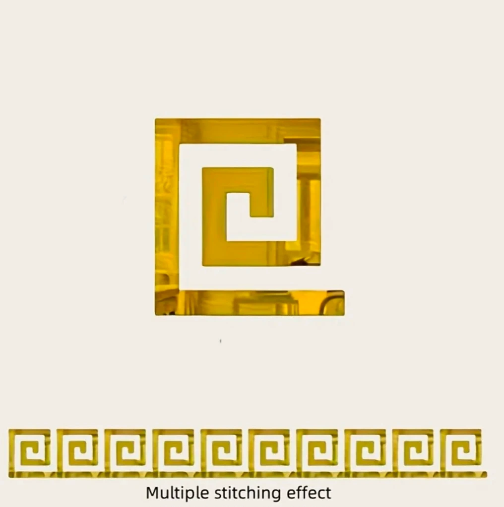 Add a touch of classic design to your walls with these gold-coloured mirror decals. Each decal is shaped like a Greek key pattern and measures approximately 5cm by 4.5cm. They have a protective film that needs to be removed before application. These decals are great for adding decorative accents to any room!