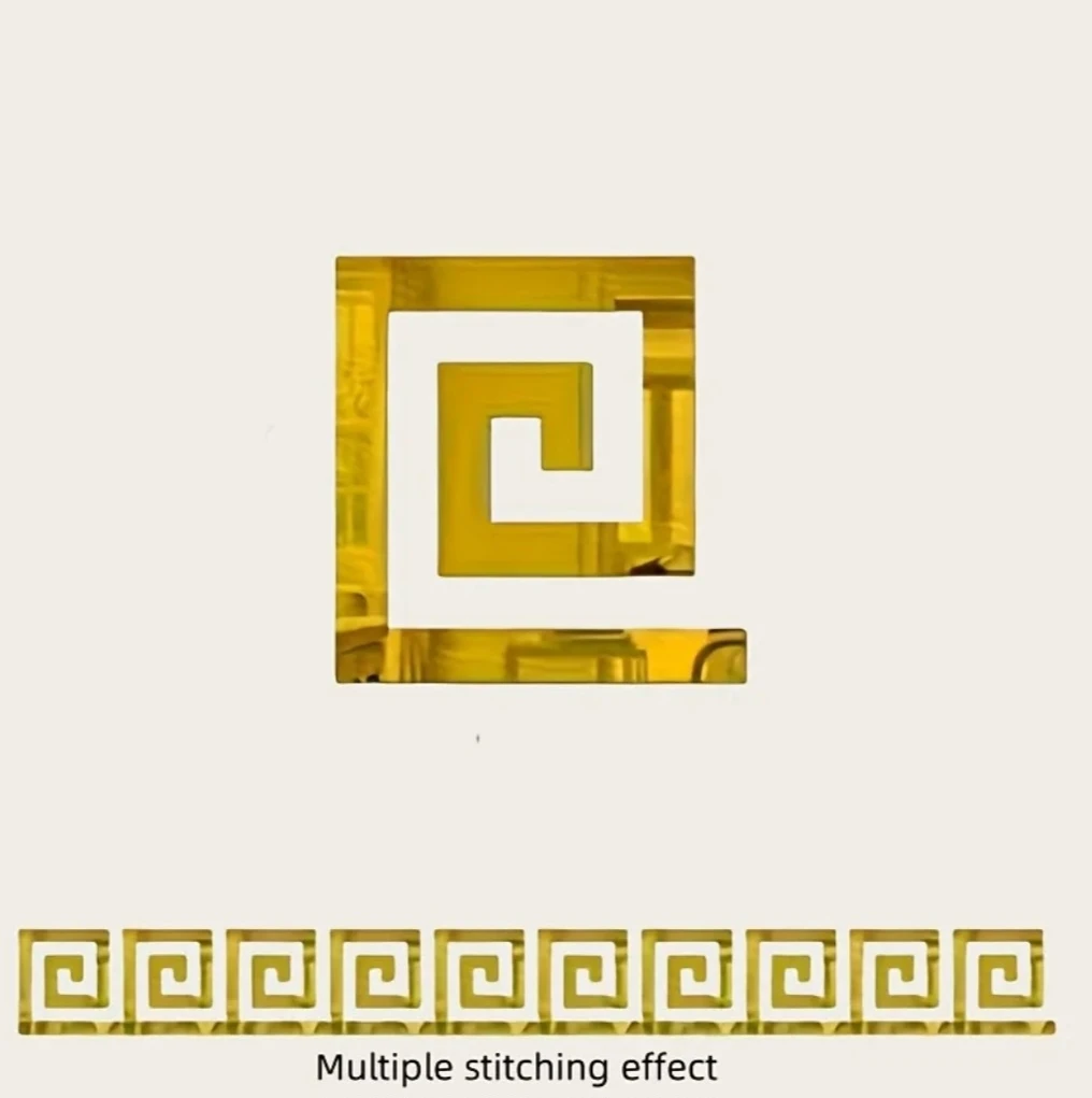 Add a touch of classic design to your walls with these gold-coloured mirror decals. Each decal is shaped like a Greek key pattern and measures approximately 5cm by 4.5cm. They have a protective film that needs to be removed before application. These decals are great for adding decorative accents to any room!