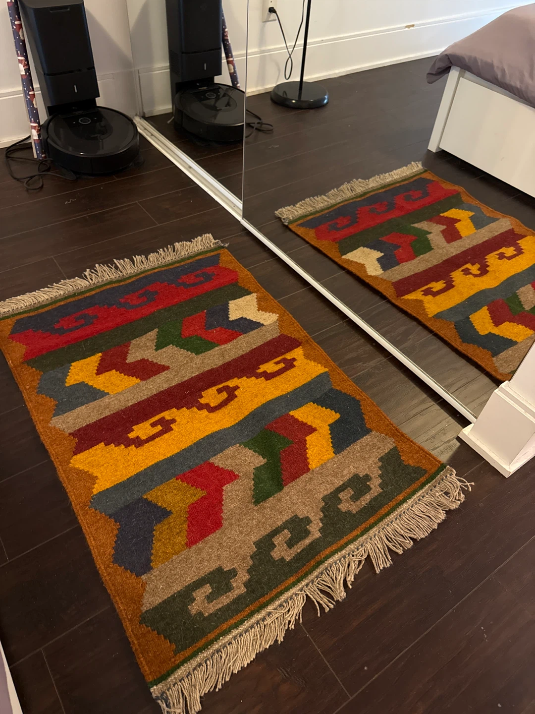 Selling a colourful area rug! It's new and would add a pop of colour to any room. It features a unique pattern with a variety of colours, including red, yellow, green, and brown. It's perfect for adding a touch of warmth and style to your home. I have two of them! Selling each for 60$.