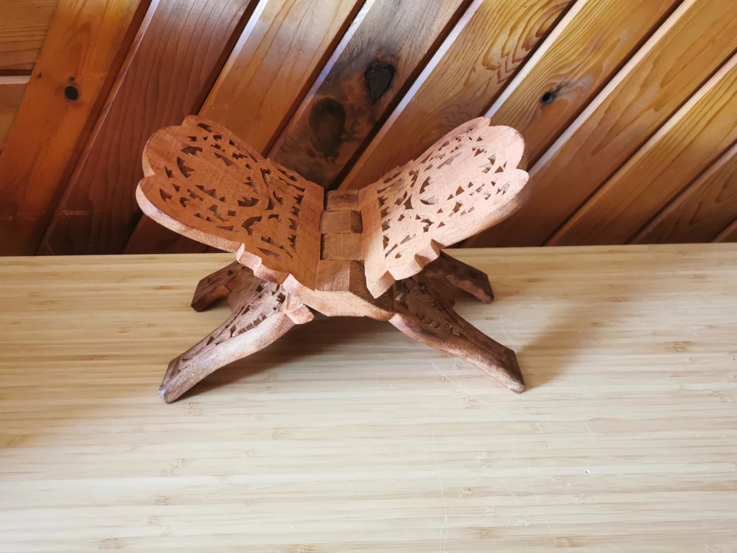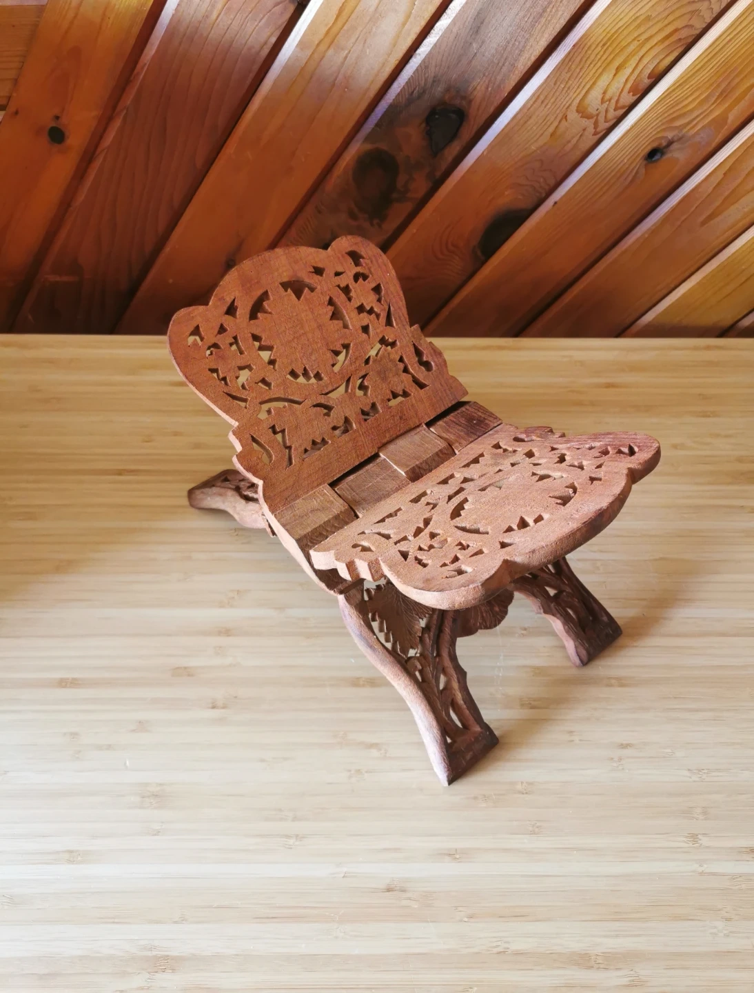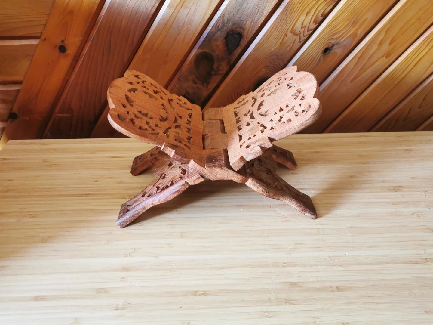 Vintage Hand Carved Wooden Folding Book Stand Ornate Decor