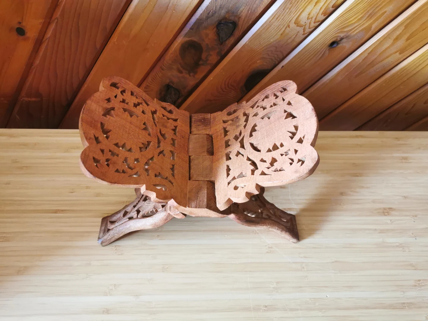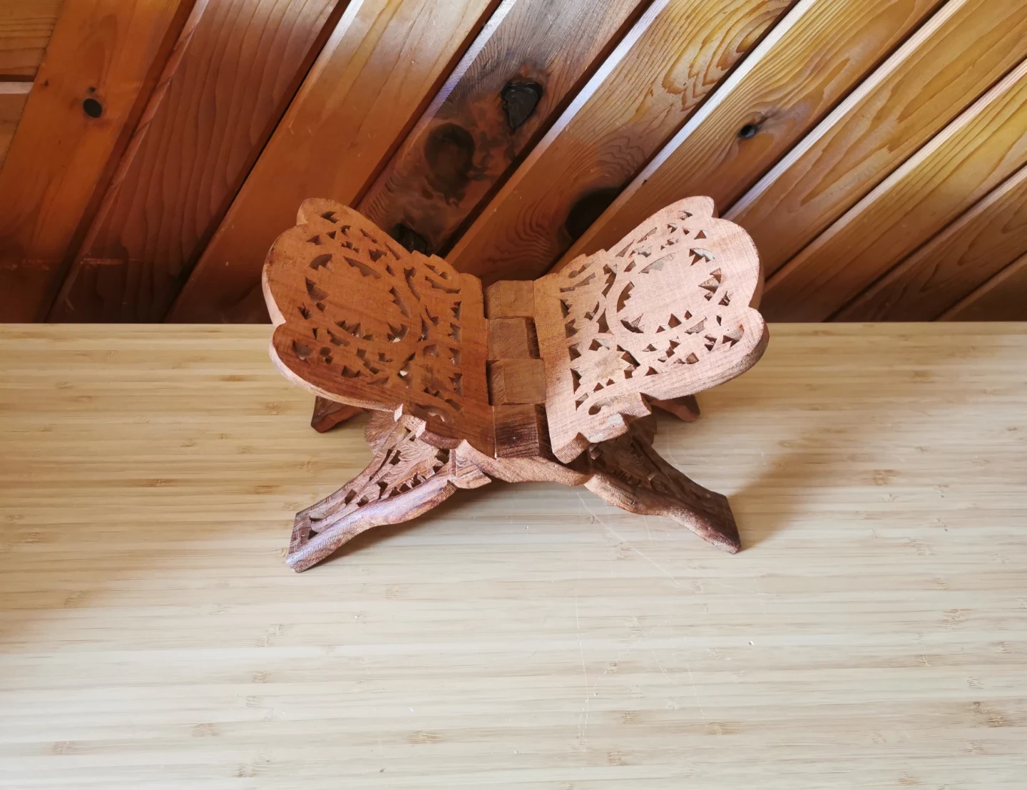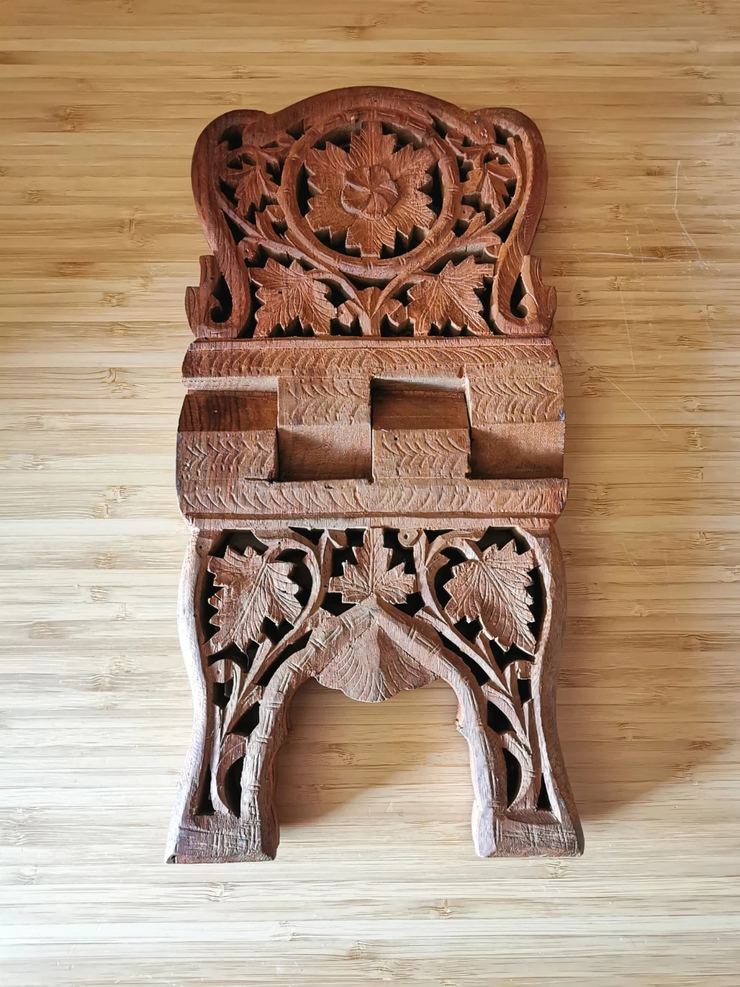 Vintage Hand Carved Wooden Folding Book Stand Ornate Decor