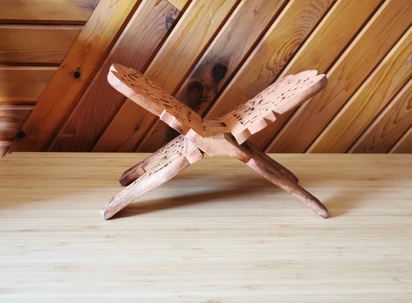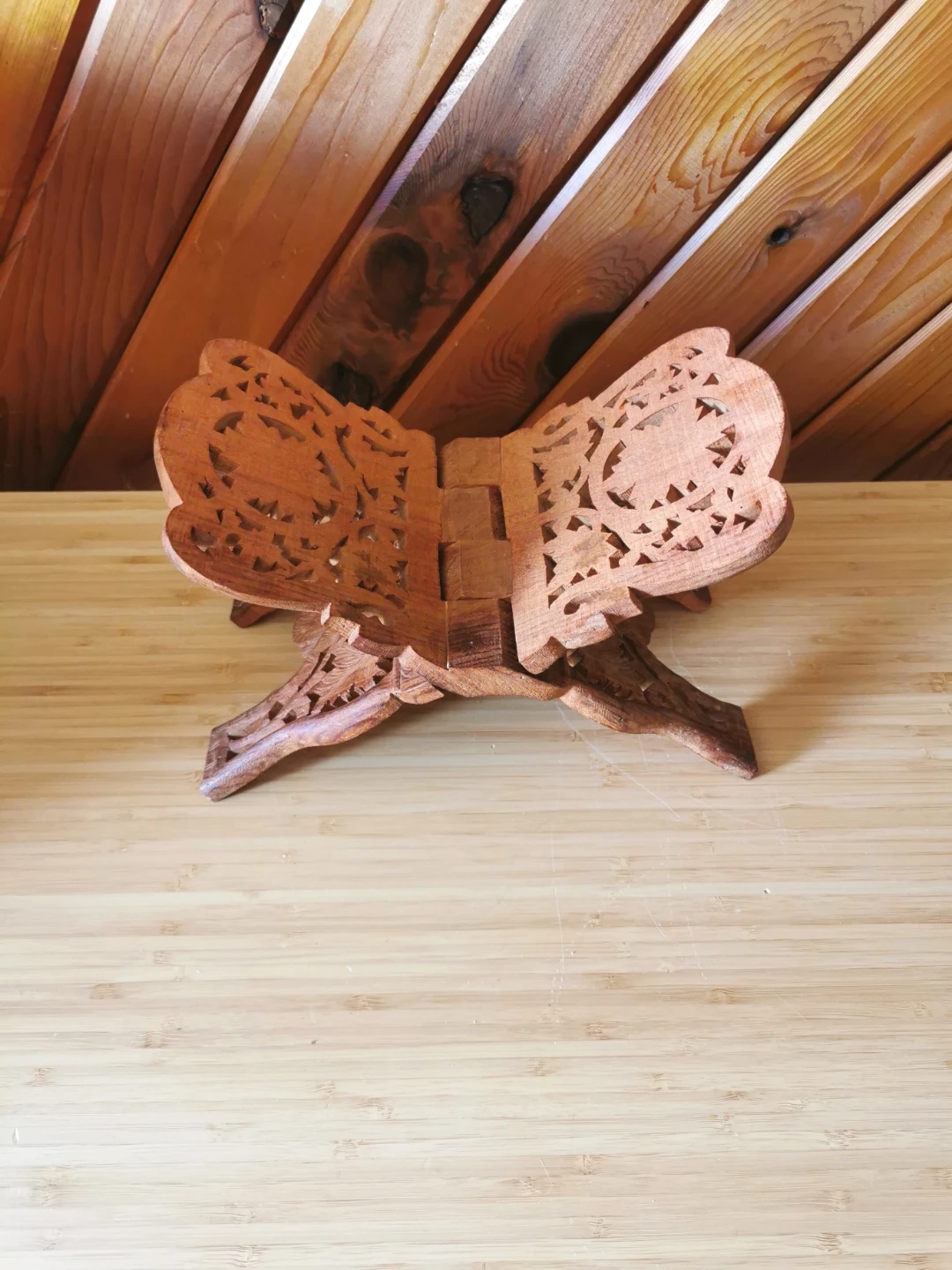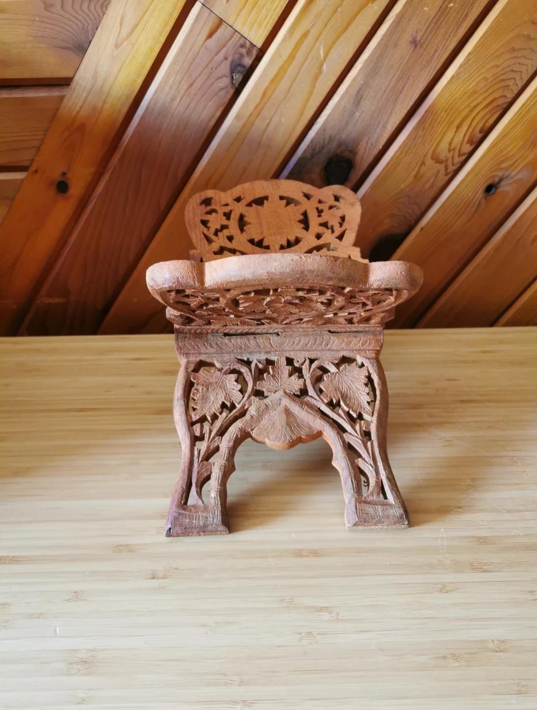 Vintage Hand Carved Wooden Folding Book Stand Ornate Decor
