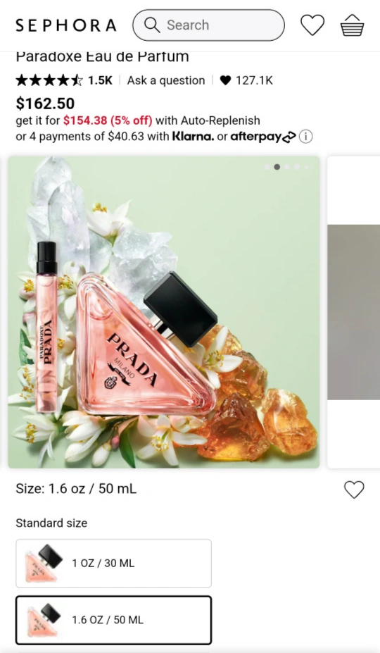 Valued at over $200! Just the 50mL bottle alone retails at Sephora for $162.50+tax, and the 10mL bottle for $43.00 +tax. You get both in a beautiful authentic Prada box 😍