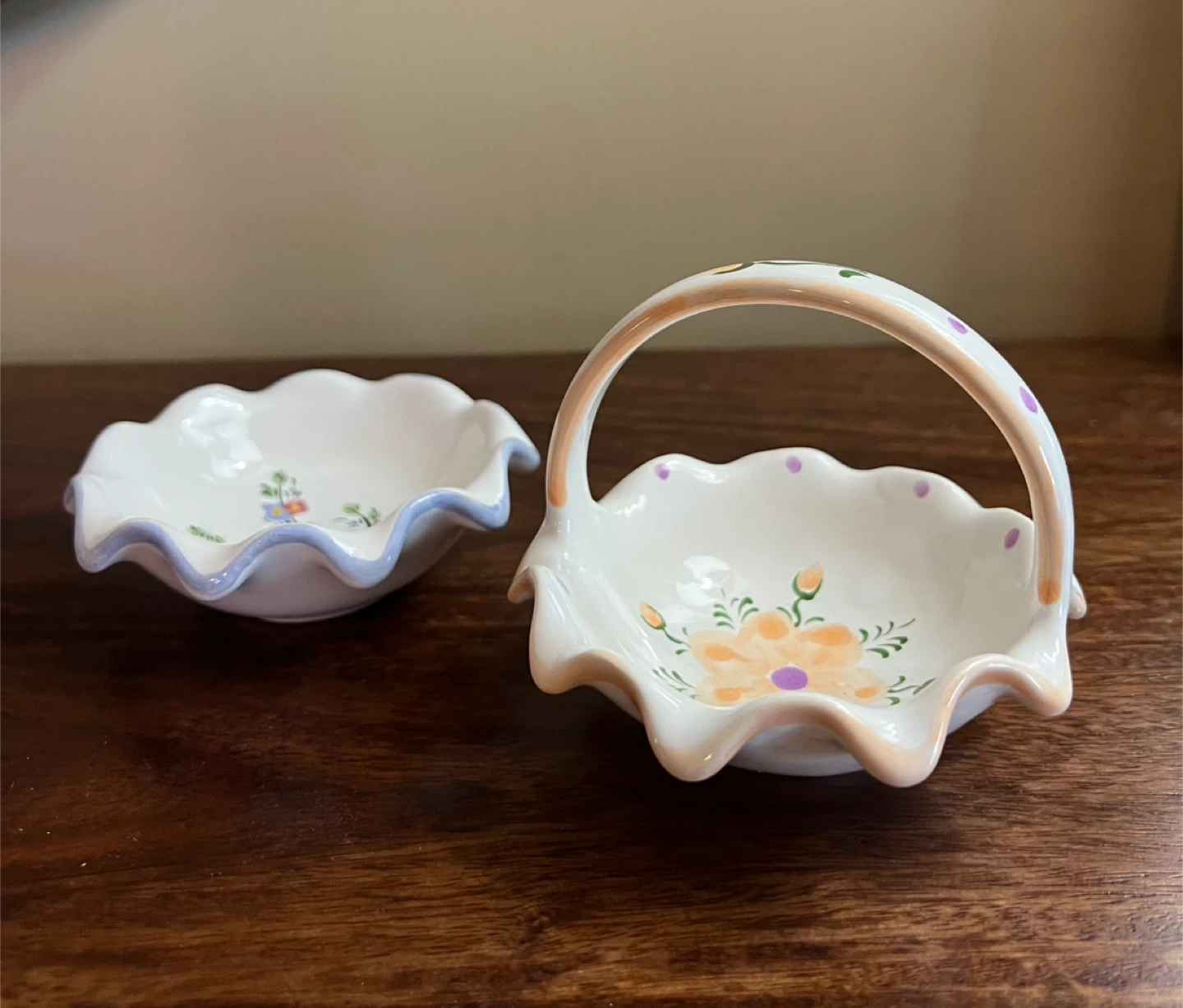 Vintage Small Ceramic Bowl and Basket
