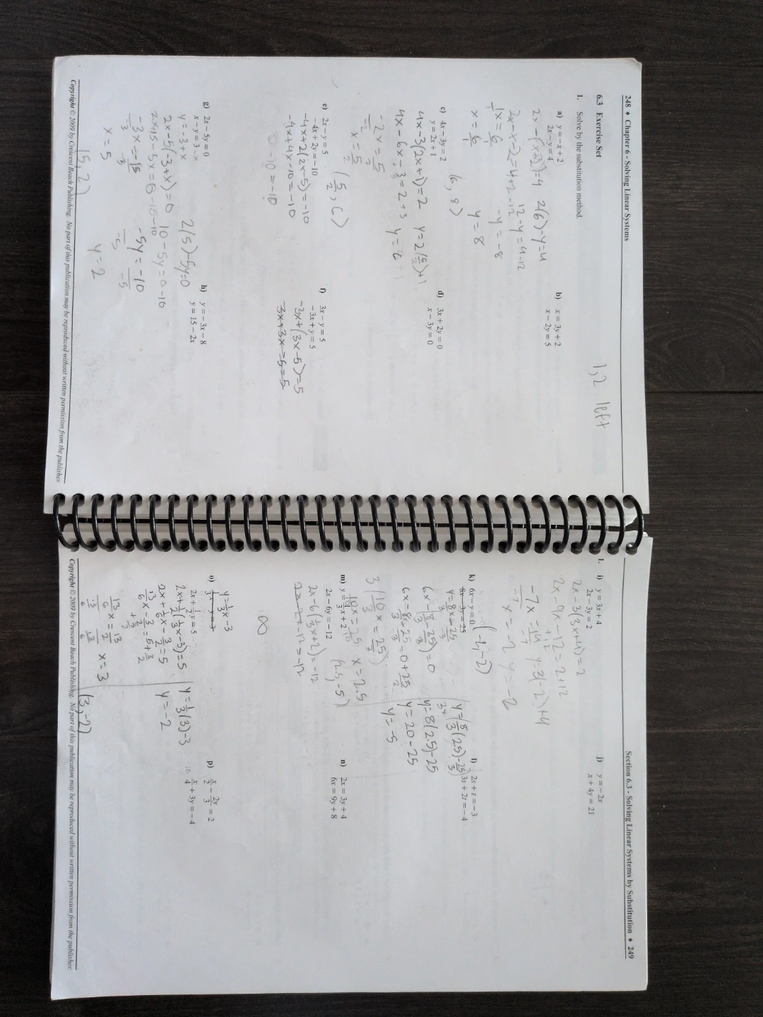 This workbook covers topics like polynomials, linear equations, and functions. It's filled with exercises and some completed solutions. Useful for high school algebra review.