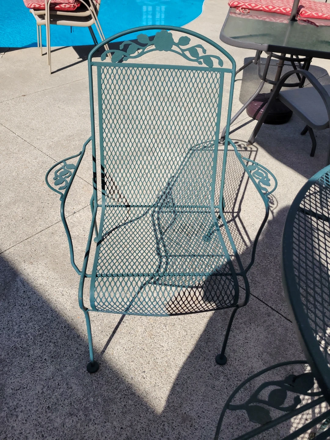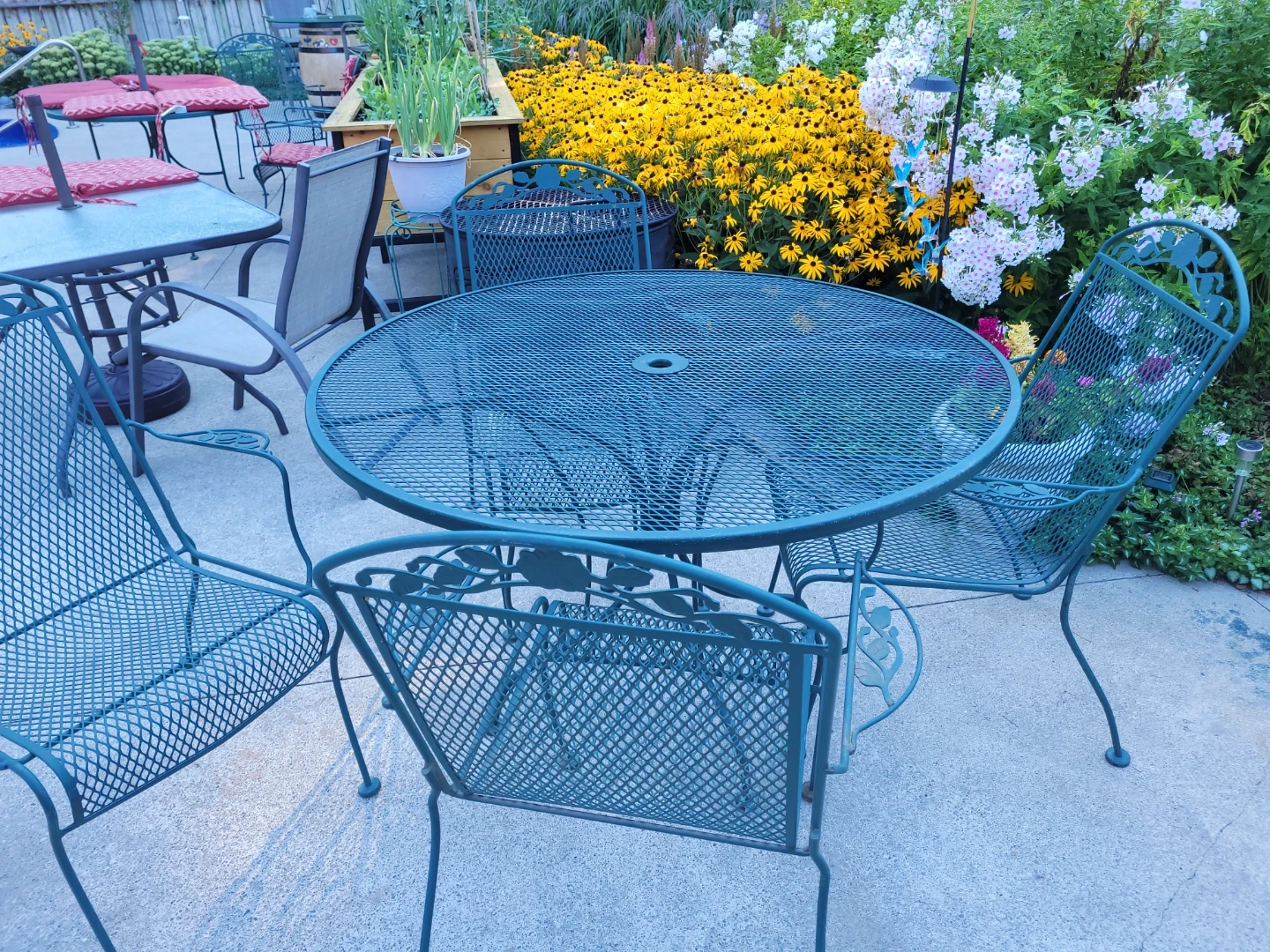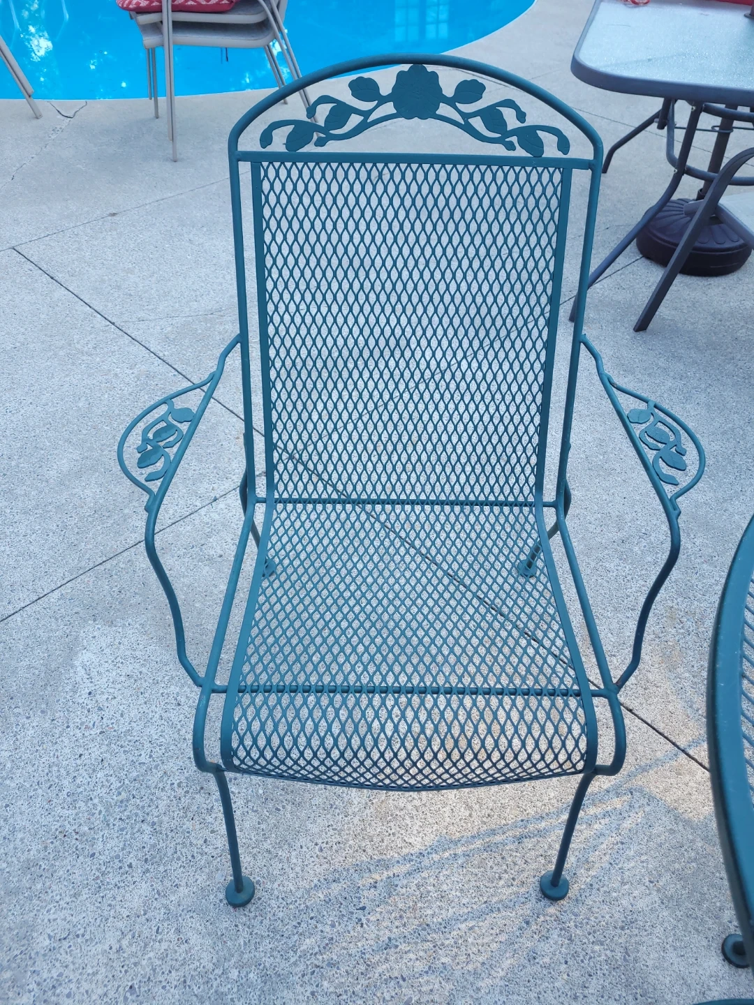 Buy & SellTeal Metal Outdoor Dining SetTeal Metal Outdoor Dining Set$590Teal metal dining set with a round table and six chairs. It's made of durable metal mesh. This set is ready for your backyard patio!WHERE TO MEETCheck LocationView MapSELLER989375Tottenham100 reviews0 chats·0 favorites·12 viewsSEND CHAT TO SELLERHi 989375! I’m interested in your listing.Hi 989375! I’m interested in your listing.Get the Karrot app to chatSign In to chat