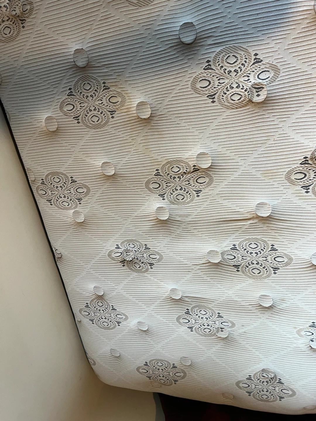 Has some stains , too soft for me. It was sanitized with hydrogen peroxide solution for the next person .