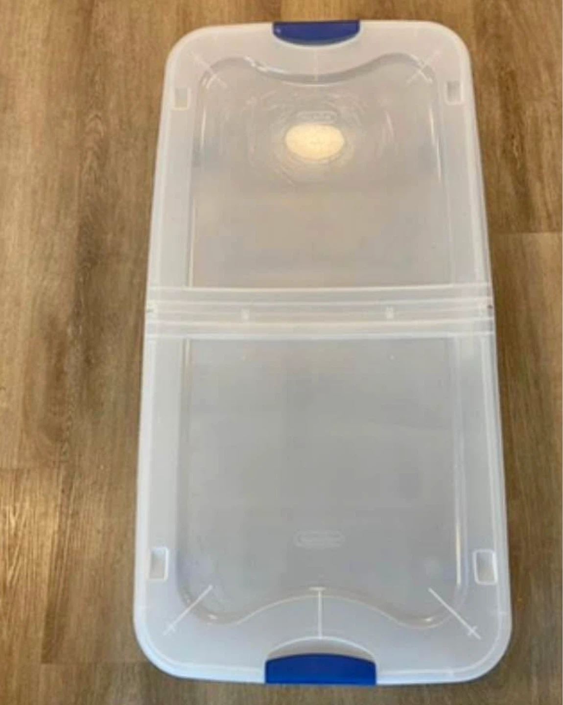 Selling a clear under bed storage box! It's great for maximizing space and keeping things organized. The box comes with wheels for easy sliding and access. Perfect for storing clothes, shoes, or other items under your bed
