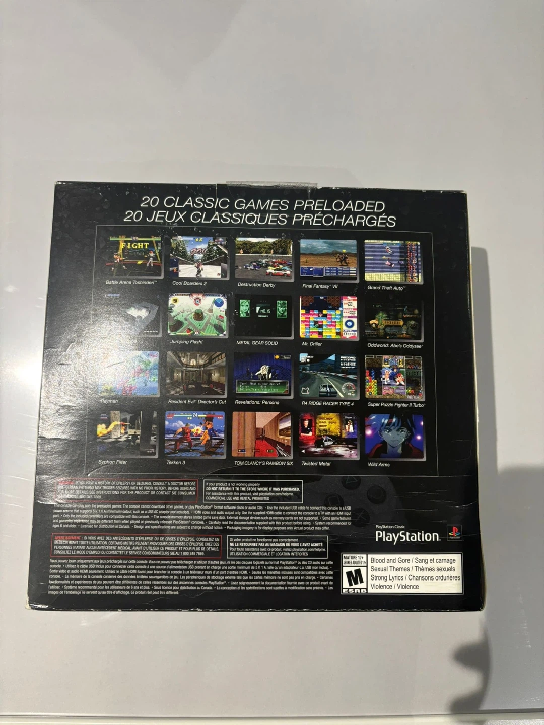 New !! This is the Sony PlayStation Classic console with 20 classic games preloaded. It comes with the console and one controller. Enjoy a blast from the past with iconic titles!