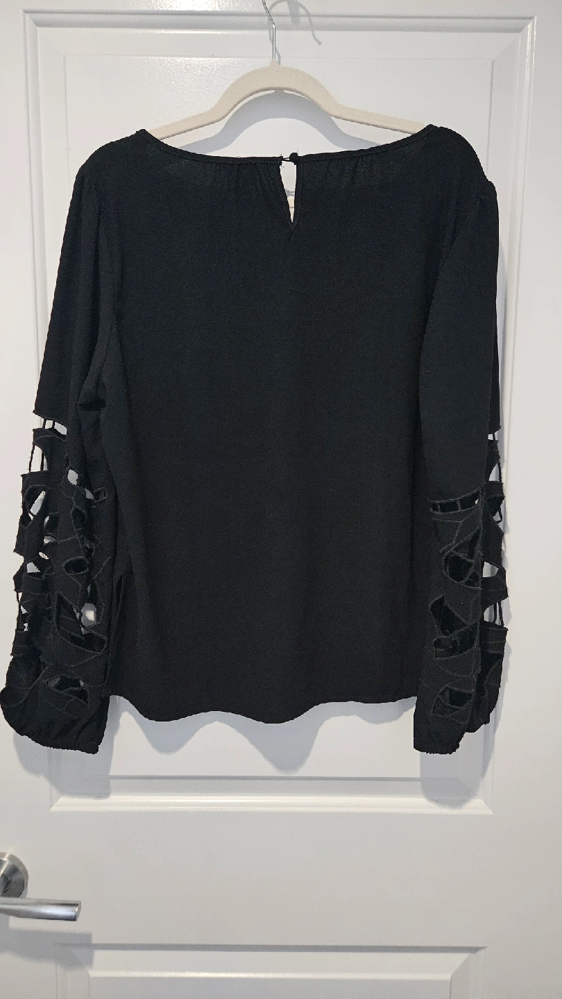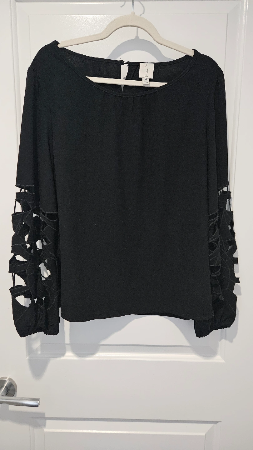 Selling a gently used Joie blouse in black! It's a size medium and features a unique sleeve design. Perfect for adding a touch of style to your wardrobe! Perfect for both work and casual days.