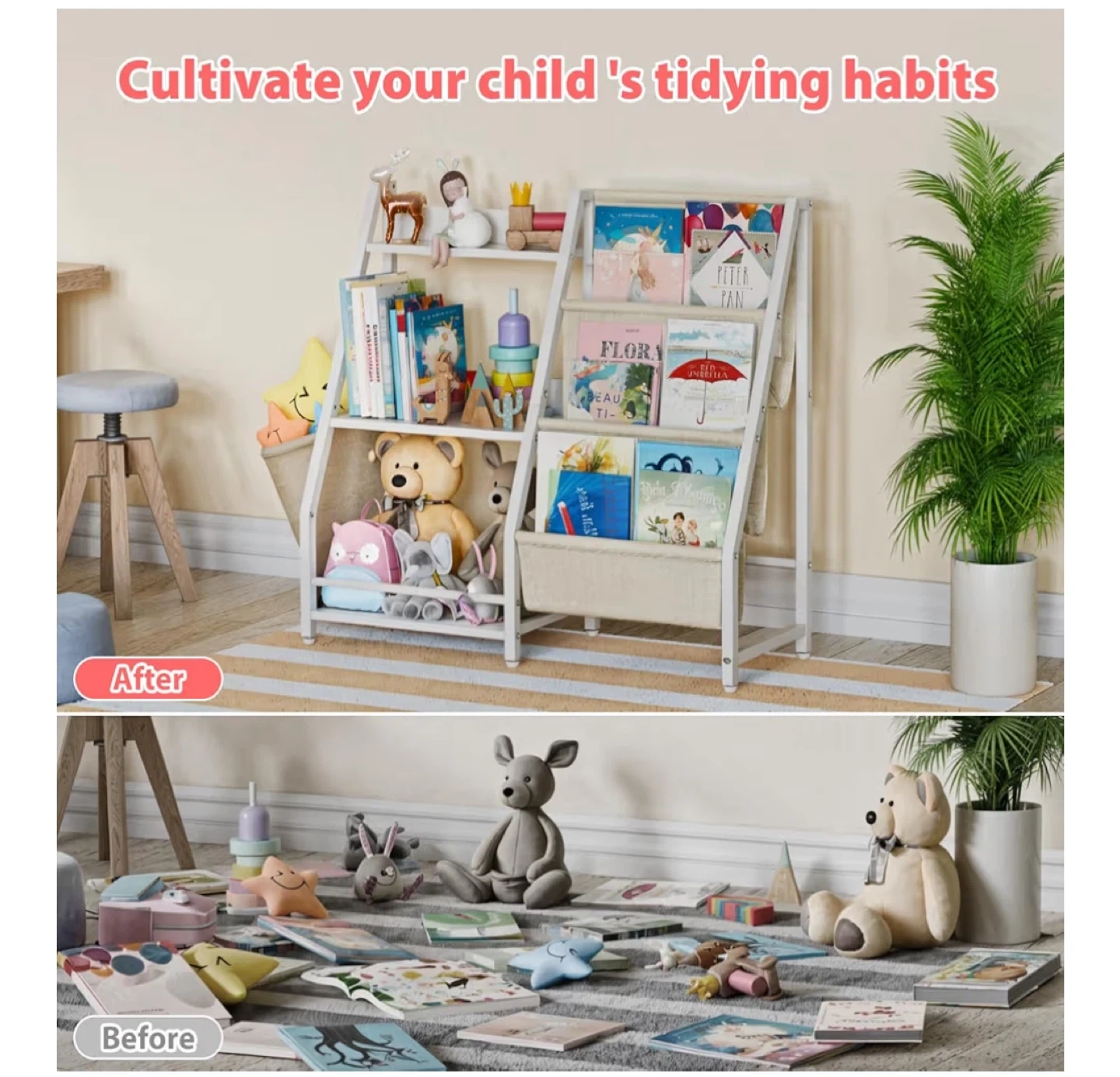 Kids Bookshelf with Storage Bins