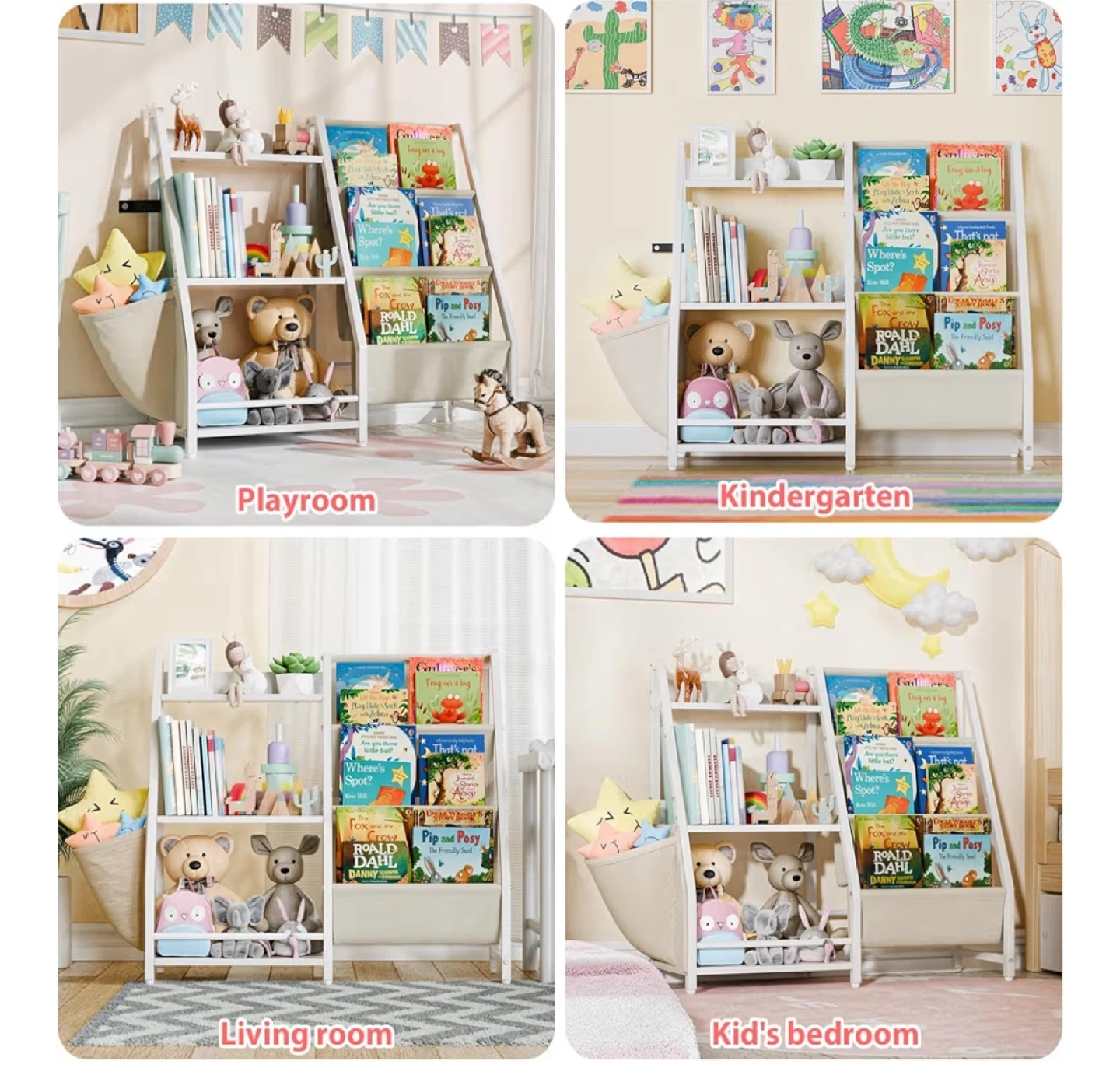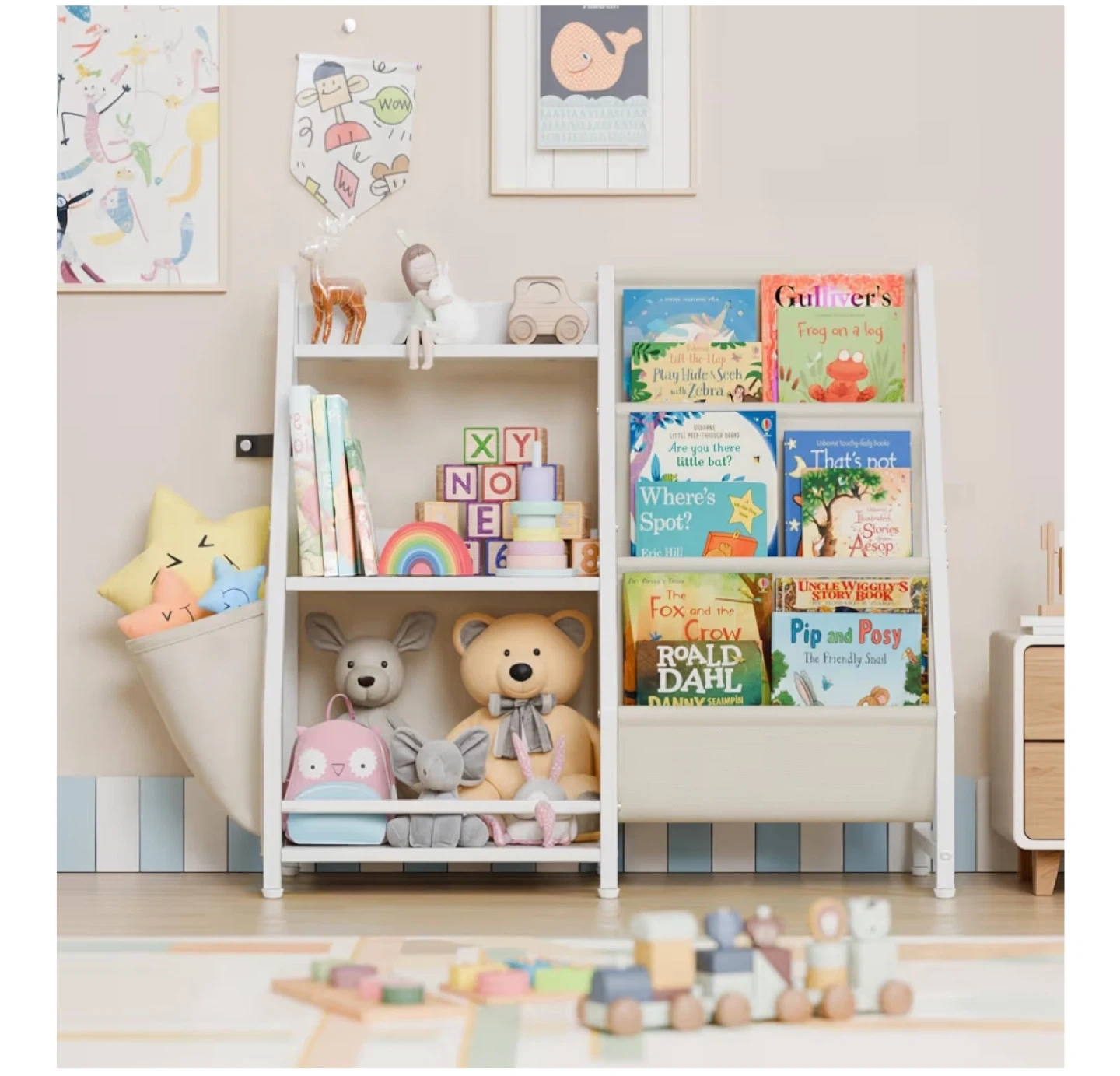 Kids Bookshelf with Storage Bins