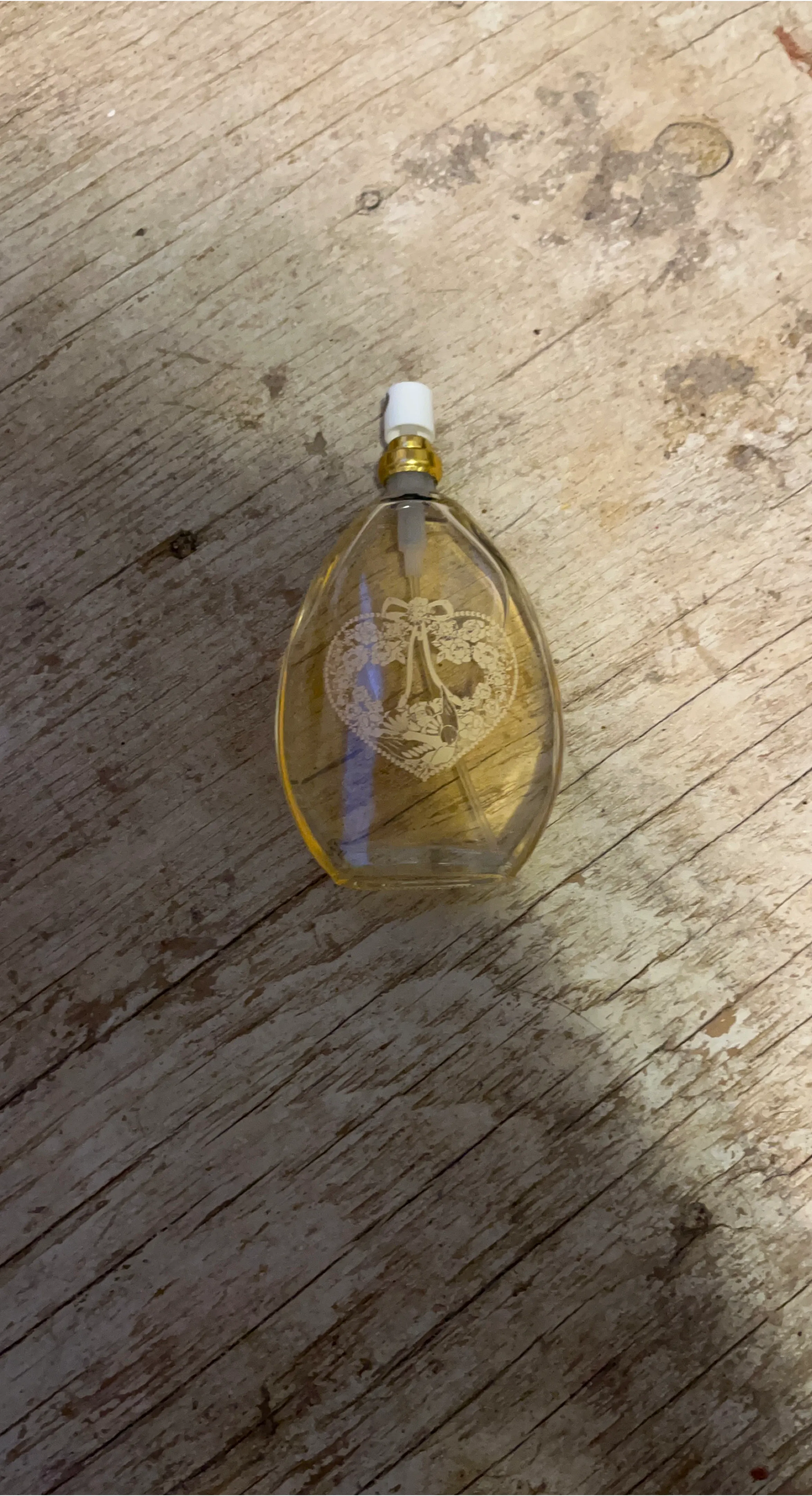 Selling a vintage perfume bottle. It has a beautiful design etched on the front. Great for collectors or anyone who loves unique vintage items!