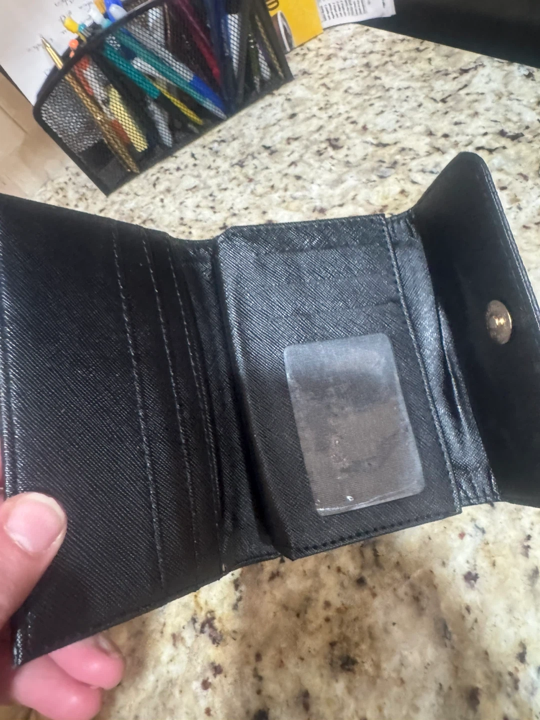 Buy & SellBlack Embossed WalletBlack Embossed Wallet$24This is a black wallet with an embossed pattern. It has multiple card slots and a clear ID window inside. The wallet closes with a snap.ConditionGoodWHERE TO MEETBy ozerna parkView MapSELLERverifiedKateOzerna700 reviews1 chats·1 favorites·33 viewsSEND CHAT TO SELLERHi Kate! I’m interested in your listing.Hi Kate! I’m interested in your listing.Get the Karrot app to chatSign In to chat