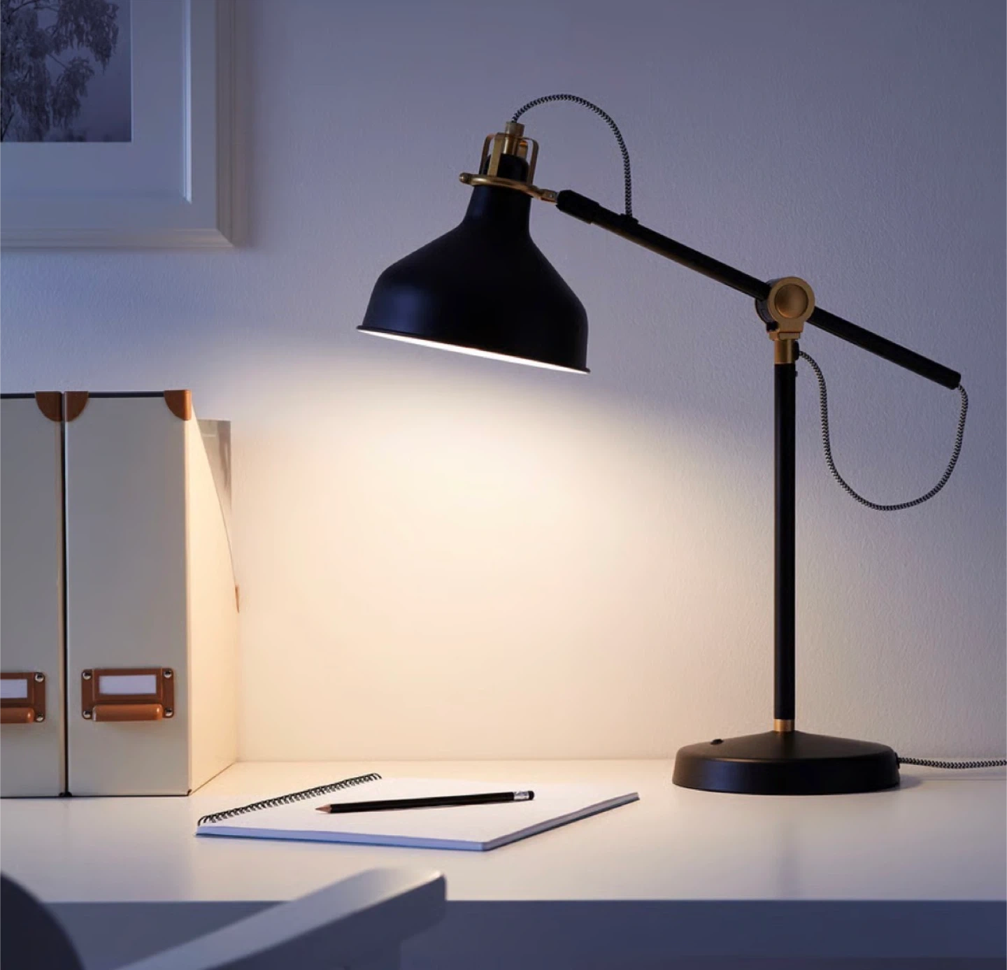 IKEA RANARP desk lamp in black. It's adjustable with a metal construction and gold-tone accents. Great for a desk or workspace! New in box $54.99 + tax