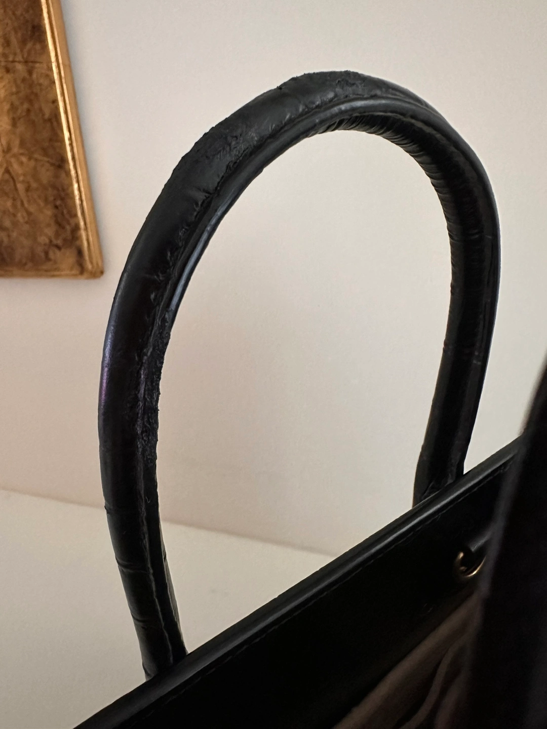 Excellent condition Bunny tried to chew handles a bit, it’s been repaired with liquid leather or also can be wrapped with twillies Comes with dust bag, strap, lock, keys