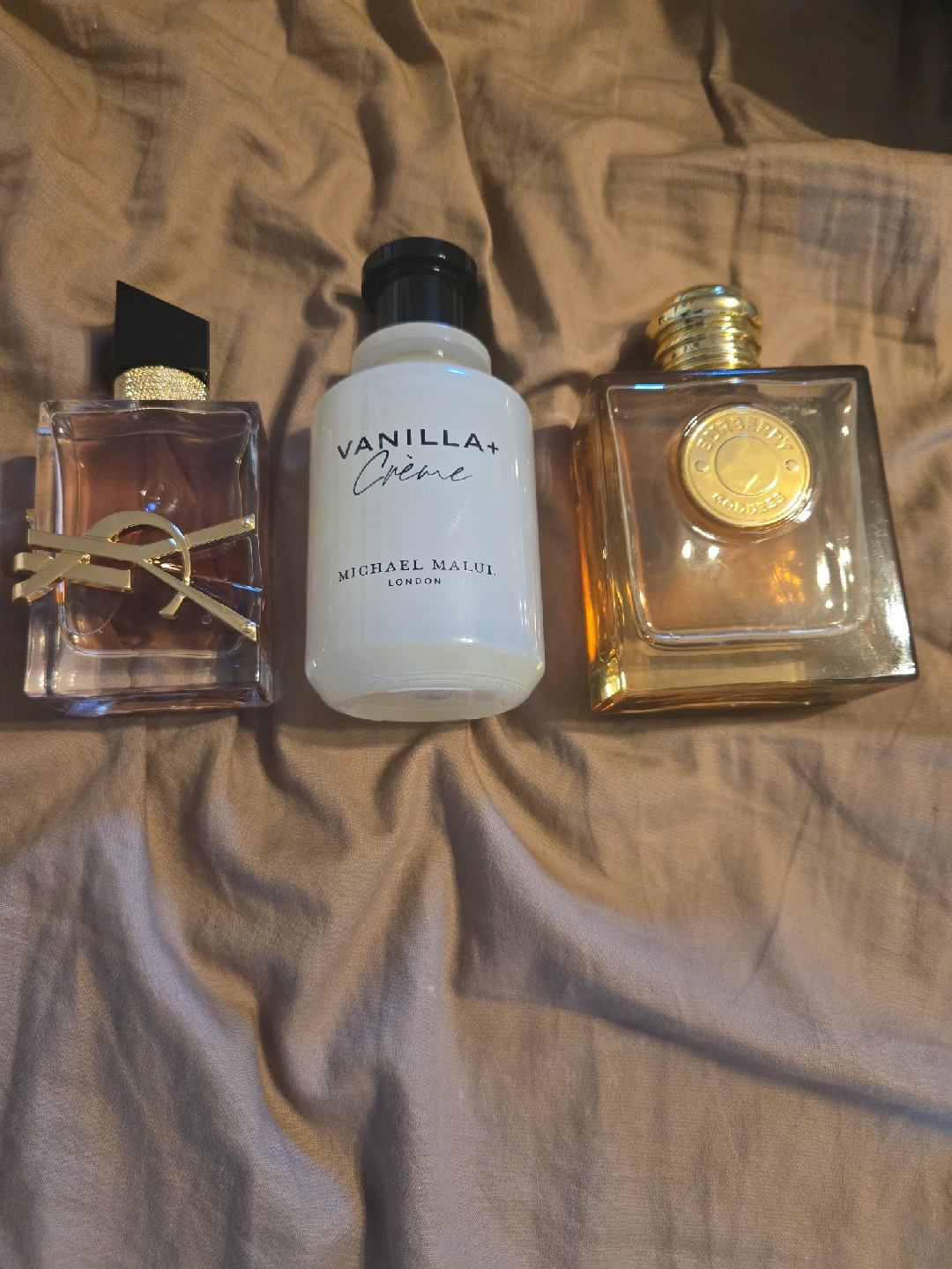 Selling a bundle of three perfumes! Includes a YSL perfume, a Michael Malul Vanilla + Crème perfume, and a Burberry Goddess perfume $60 each or $160 for all 3