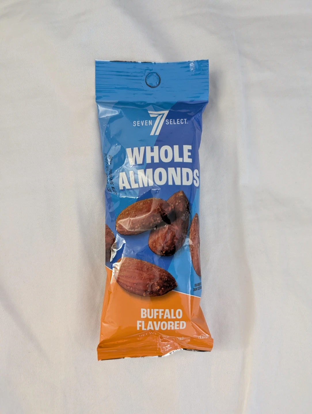 Seven Select whole almonds with buffalo flavor. Snack bag contains whole almonds. These are a delicious snack!