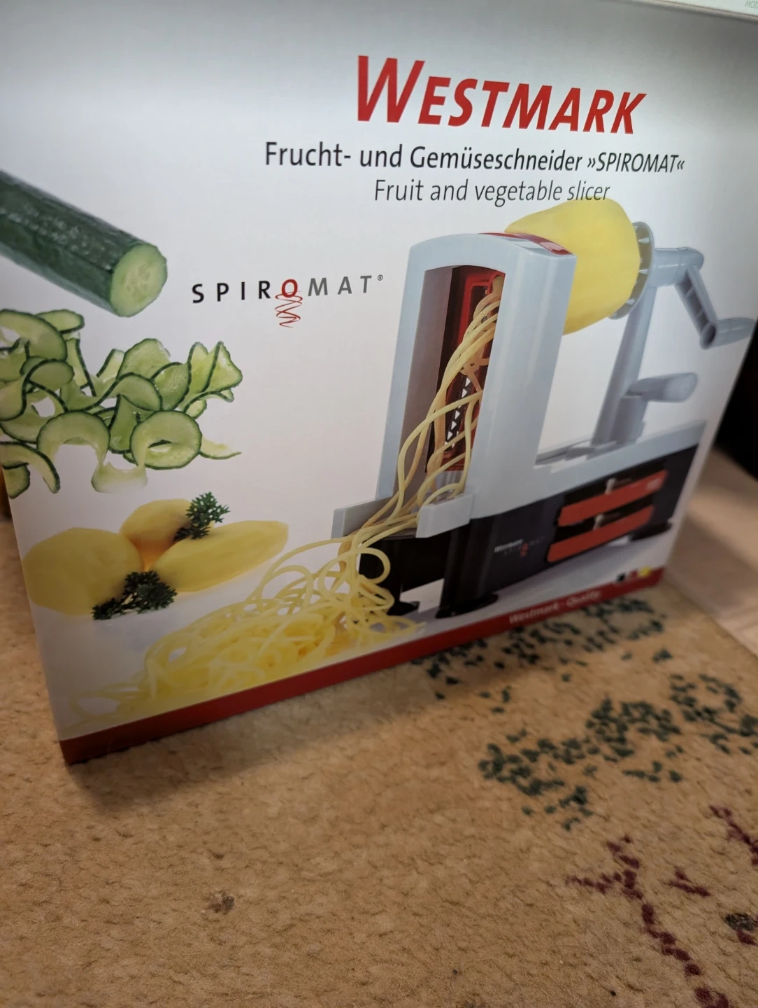 New Westmark Spiro-mat is a handy tool for slicing fruits and vegetables. It's perfect for creating veggie noodles or garnishes. Made with durable materials for long-lasting use!