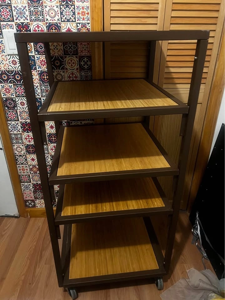 Solid Metal & Wood Shelving Unit with Wheels