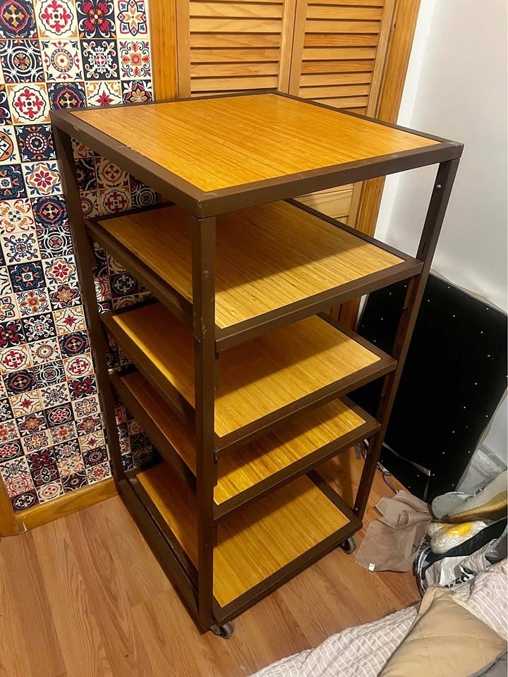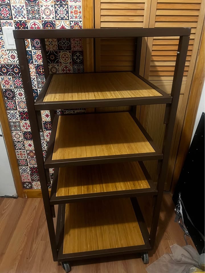 Solid Metal & Wood Shelving Unit with Wheels