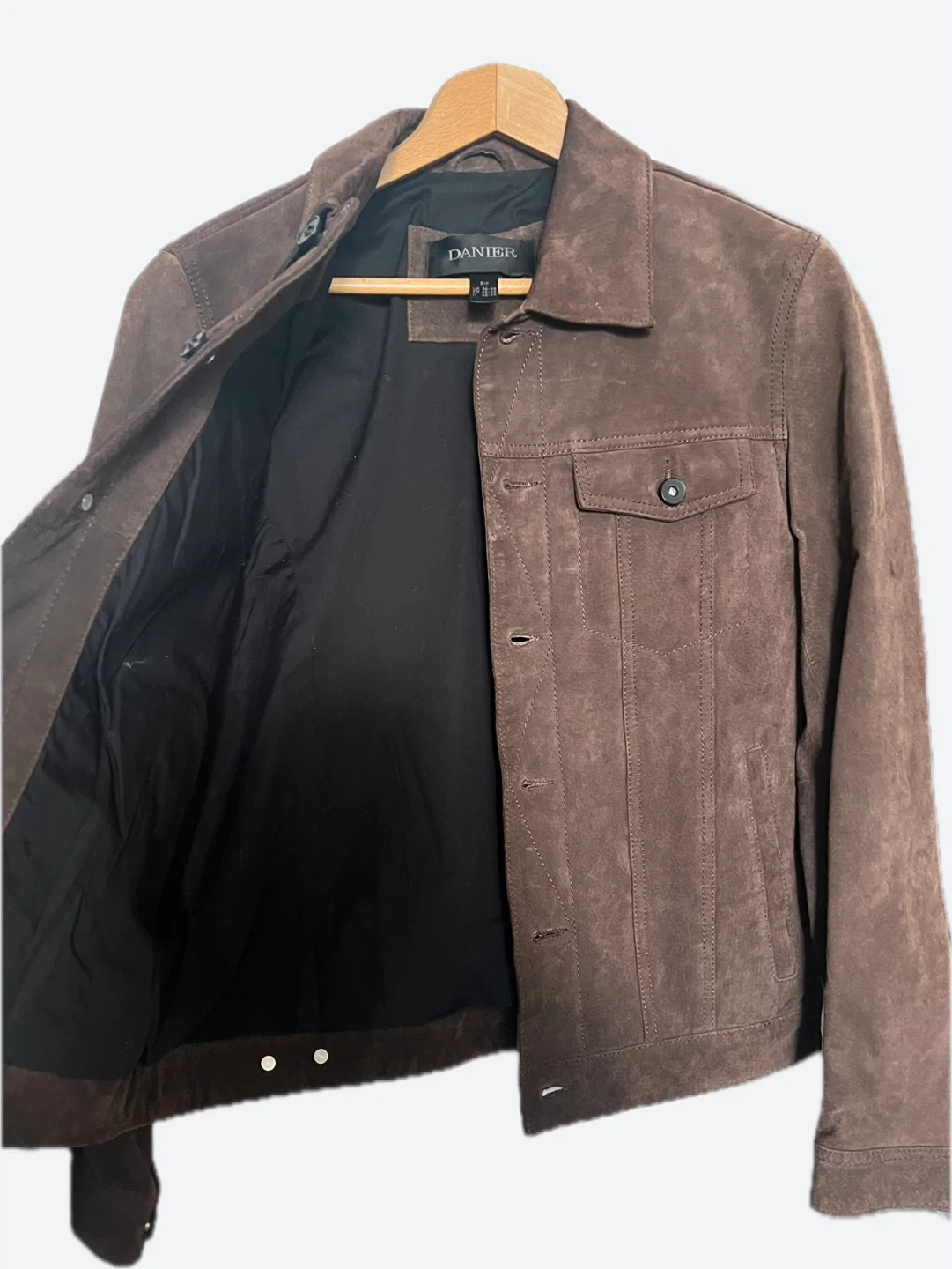 Smooth Tobacco Brown SUEDE Trucker JACKET from DANIER features: