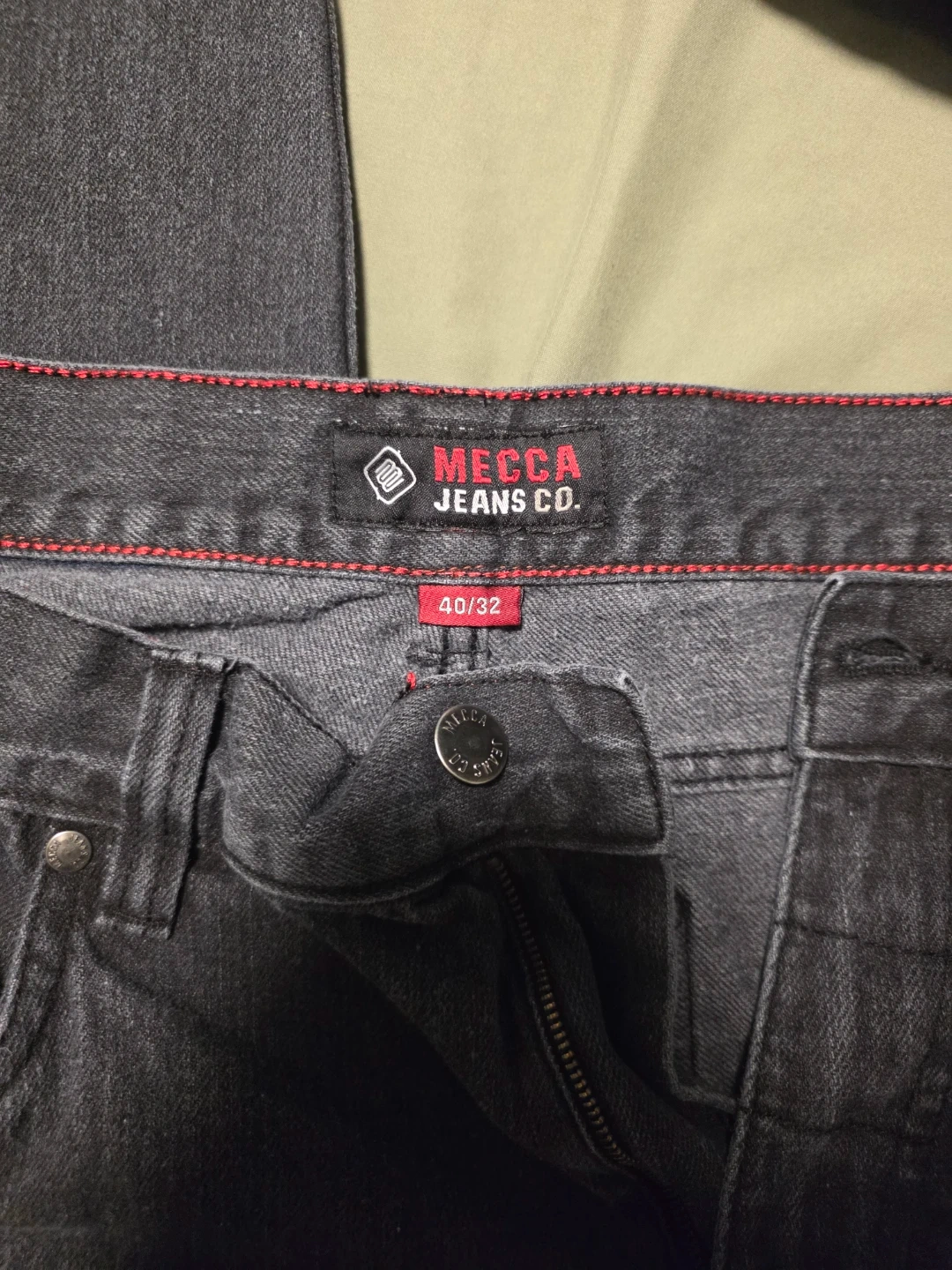 Mecca Jeans Co. denim pants in a grey wash. Waist size 40 and inseam 32. These jeans are a sturdy denim material. They're great for everyday wear!