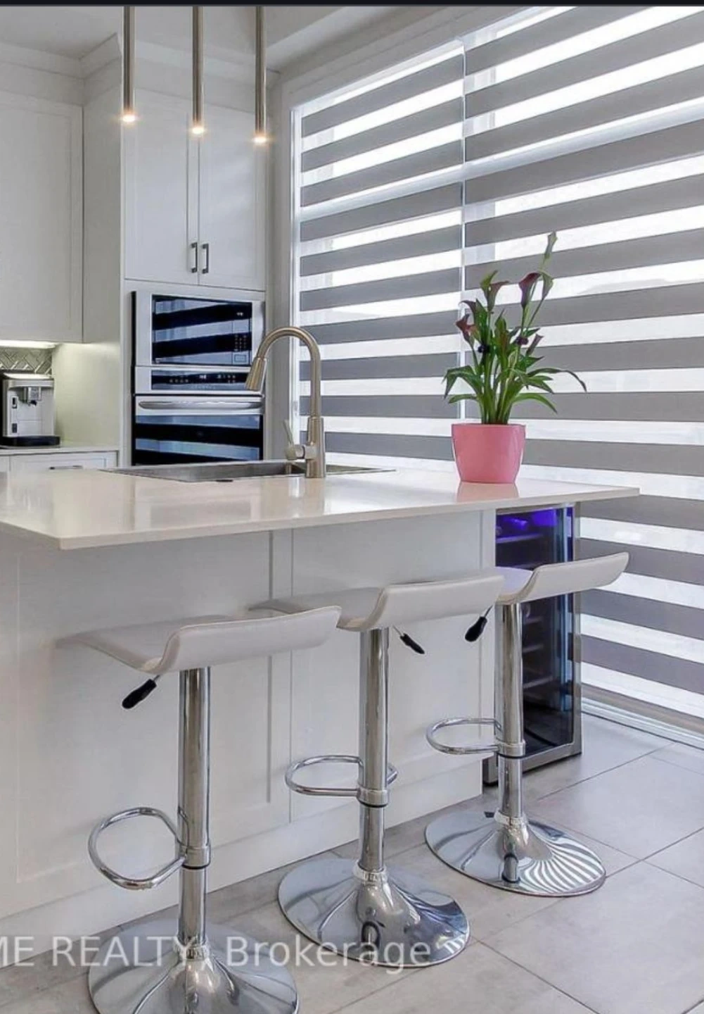 White Bar Stools with Chrome Base (Set of 3)