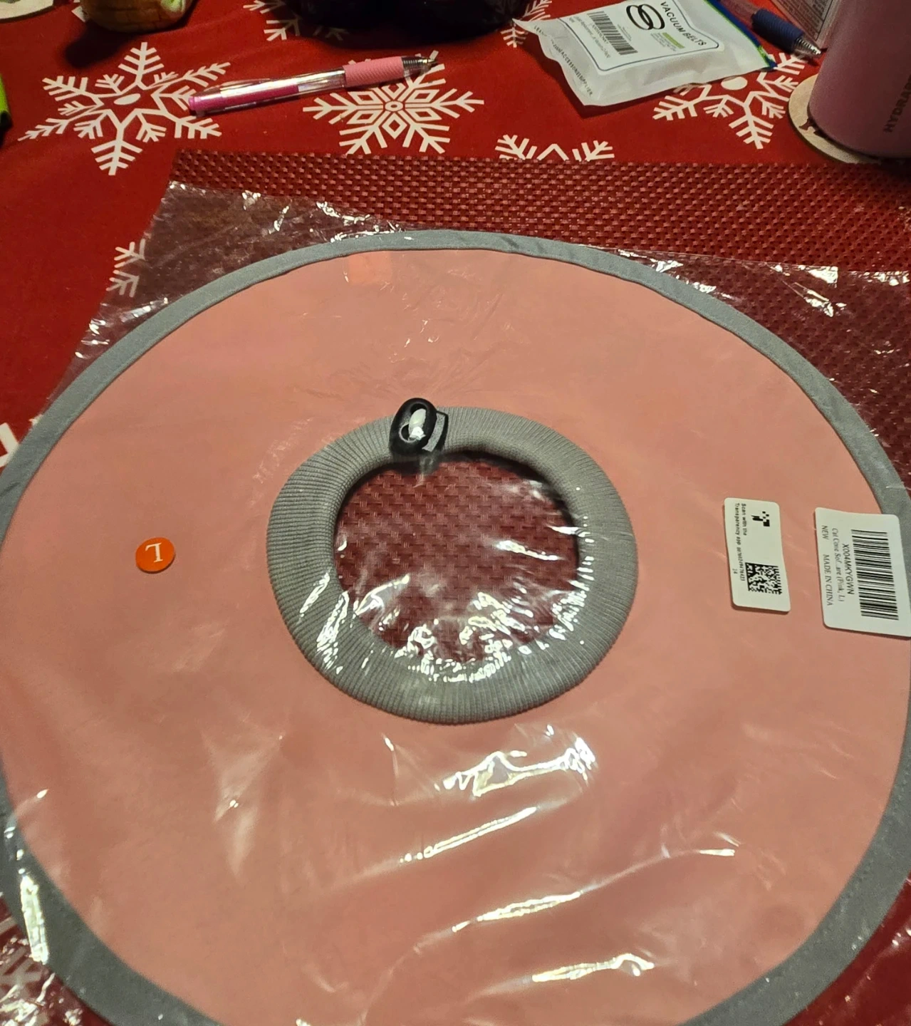Selling a pet recovery collar in size L! It's a soft, comfortable option to help your furry friend heal safely after surgery or injury. The collar is pink with a grey trim and has an adjustable strap for a secure fit pick up SE flats..never used..new