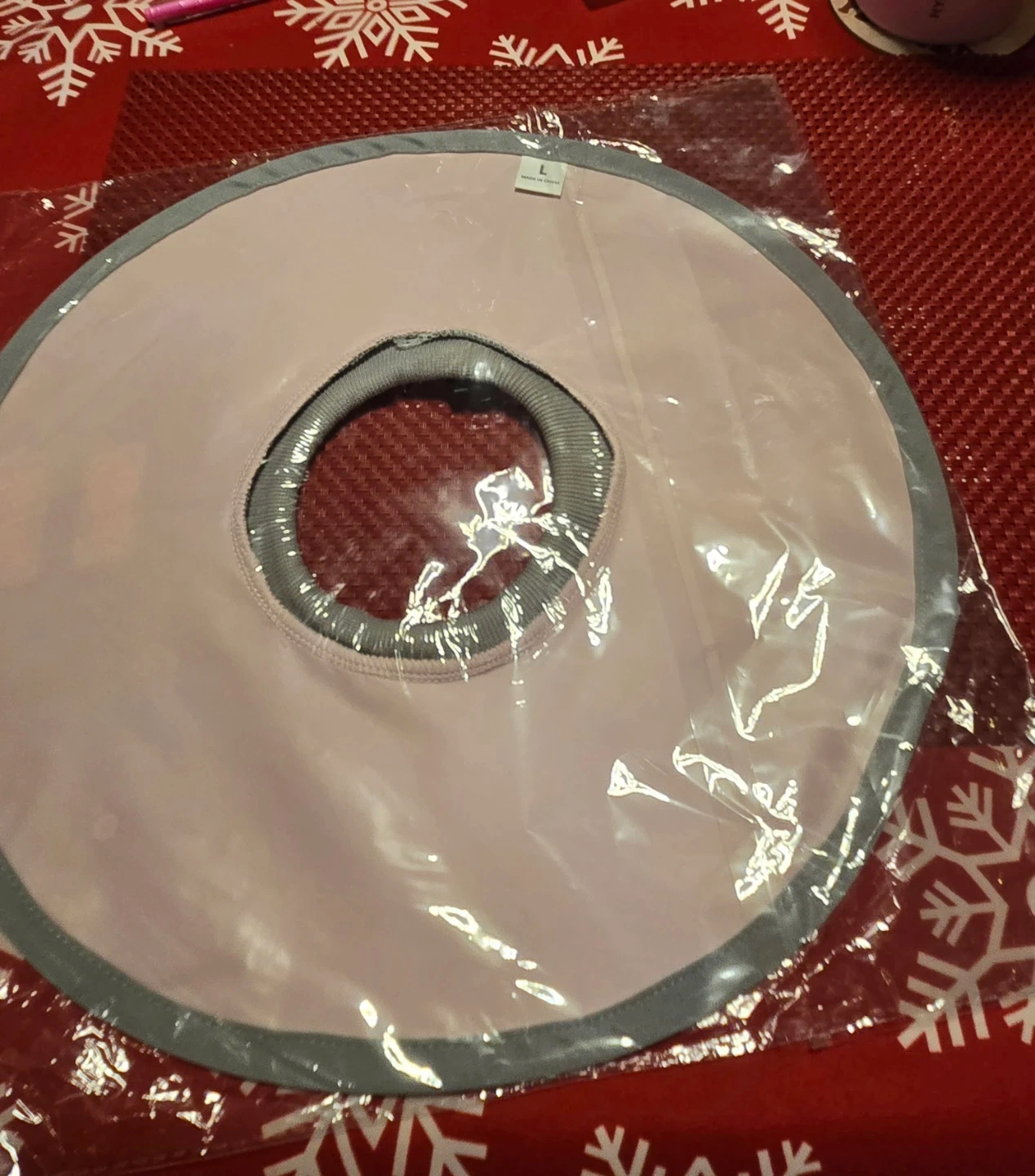 Selling a pet recovery collar in size L! It's a soft, comfortable option to help your furry friend heal safely after surgery or injury. The collar is pink with a grey trim and has an adjustable strap for a secure fit pick up SE flats..never used..new