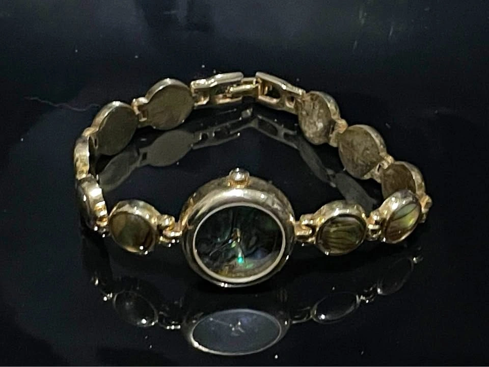 SEND OFFERS ‼️ Vintage women's quartz bracelet watch featuring a gold tone finish and iridescent abalone shell accents on the dial and bracelet. Good for a Mother's Day gift.