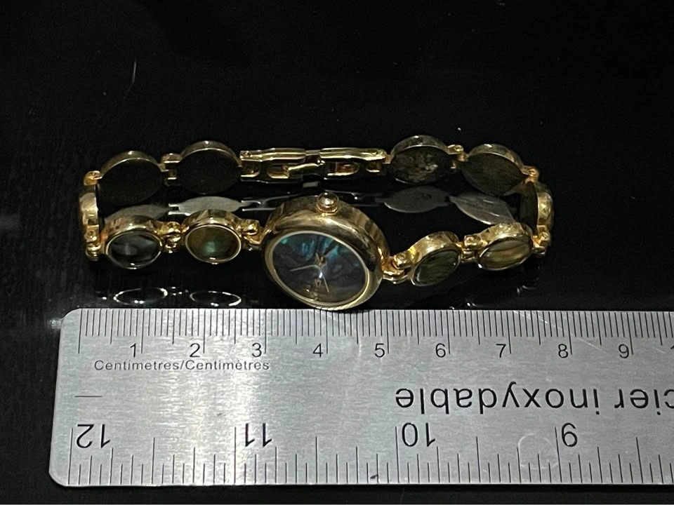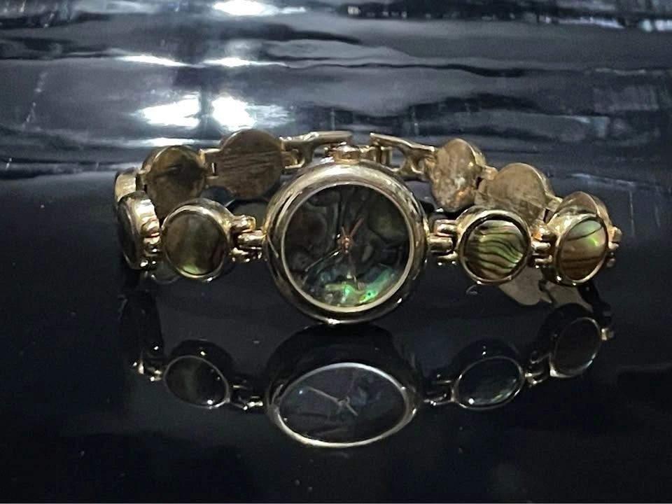 SEND OFFERS ‼️ Vintage women's quartz bracelet watch featuring a gold tone finish and iridescent abalone shell accents on the dial and bracelet. Good for a Mother's Day gift.