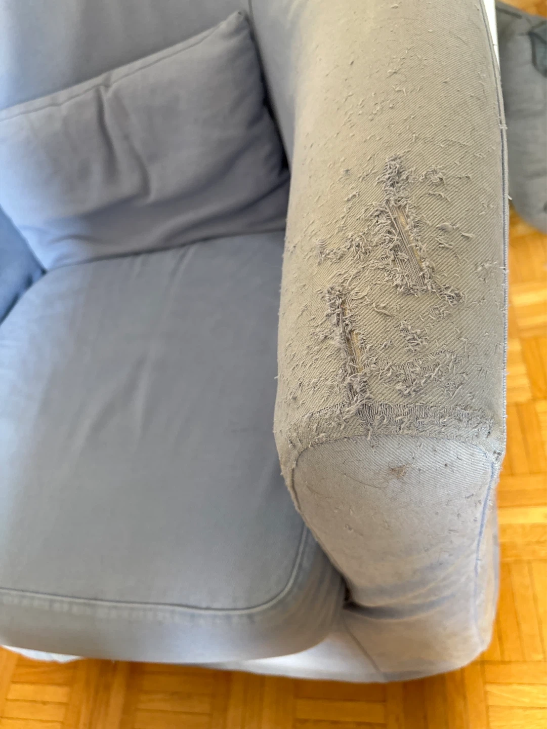 Note: The light blue cover has some cat scratches on the armrests, but you can easily replace it with a brand-new cover from IKEA or Amazon for $20-$30 to make it look 100% new!