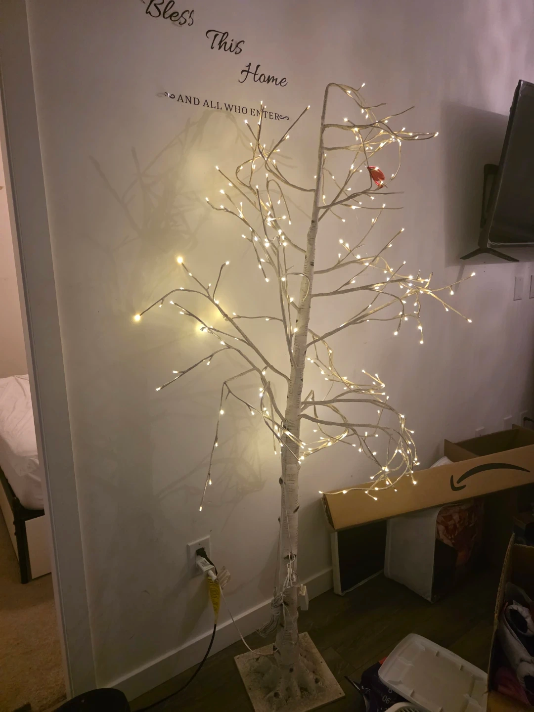 a touch of whimsy to your home with this charming birch tree adorned with lights! Perfect for creating a cozy and inviting atmosphere in any room. It's in great condition and ready to brighten up your space