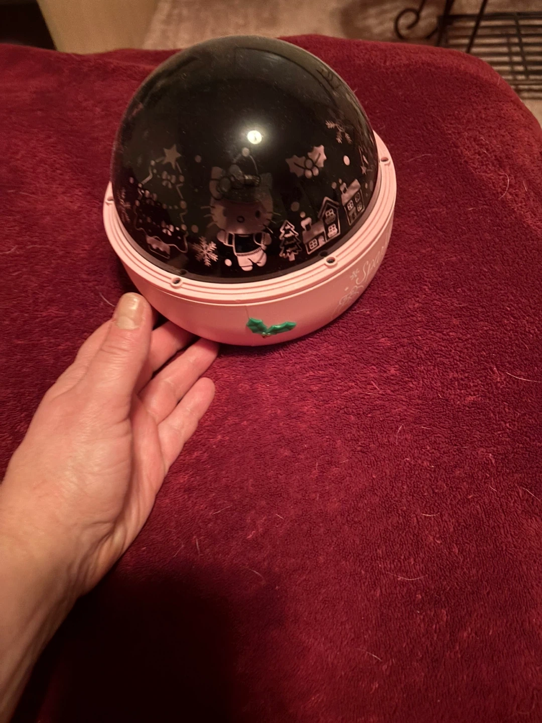 This is a Hello Kitty star projector night light. It projects stars and Hello Kitty images onto the ceiling and walls. It's in good condition and would be perfect for a child's room