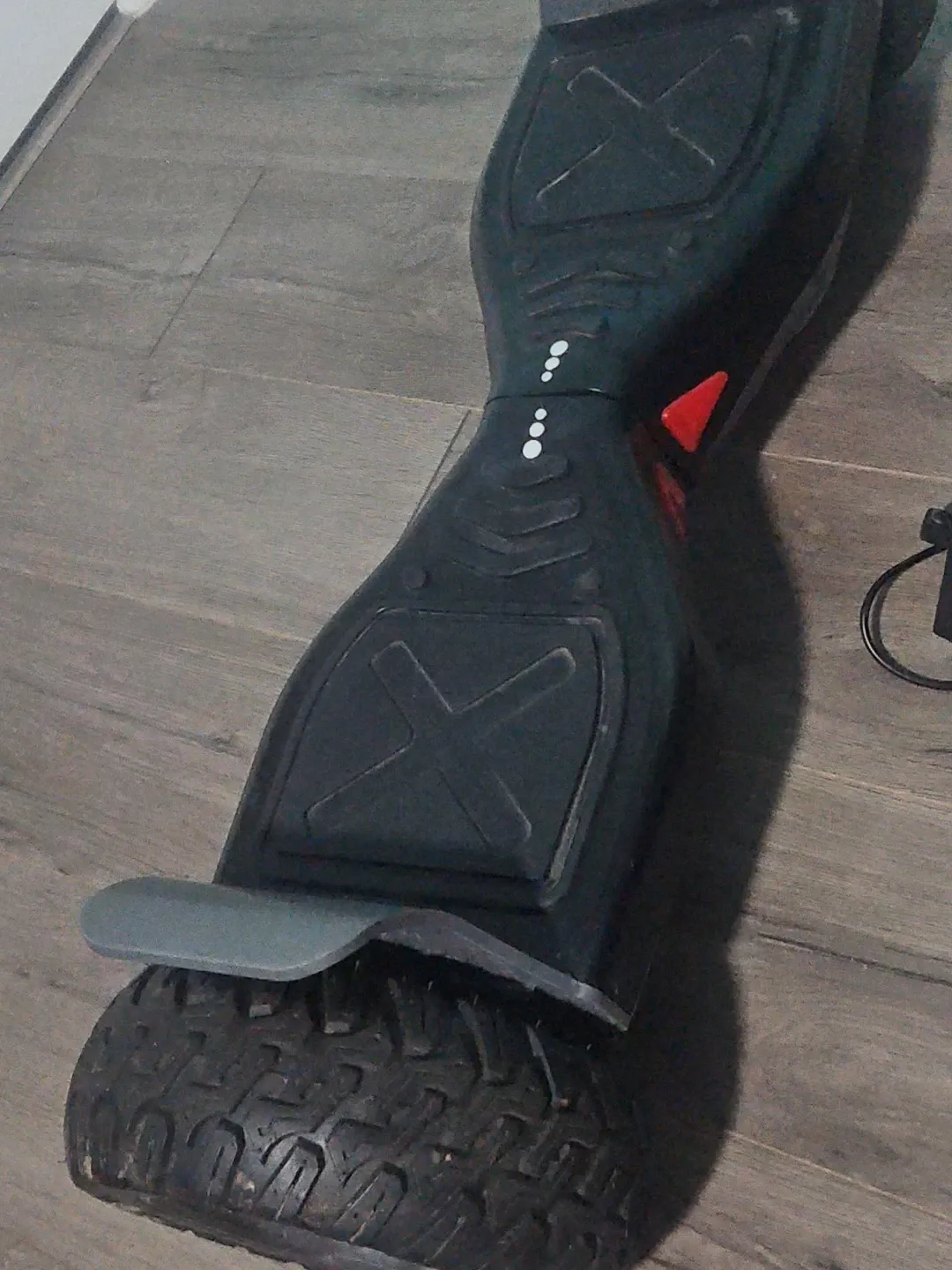 This self-balancing hoverboard has chunky tires for better grip. It's great for outdoor fun. Includes charger.
