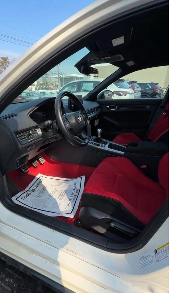 Pure performance machine with a 2.0L Turbocharged VTEC engine producing 315 horsepower and 310 lb-ft of torque. Features a 6-speed manual transmission with Rev-Match Control, Adaptive Damper System, and Limited-Slip Differential. Equipped with Brembo performance brakes and a triple-center exhaust. The track-inspired design includes an aggressive wide-body stance, functional rear wing spoiler, 19” lightweight alloy wheels with high-performance summer tires, and a sport-tuned suspension. Inside, you'll find red sport bucket seats, an aluminum shift knob, digital driver display, 9” touchscreen with Apple CarPlay & Android Auto, Bose premium sound system, and the Honda LogR performance data system. Safety features include the Honda Sensing suite, Blind Spot Information System, and a multi-angle rearview camera. Available now. Message me directly for price, availability, and to schedule a test drive.