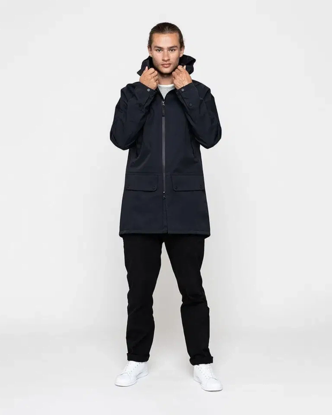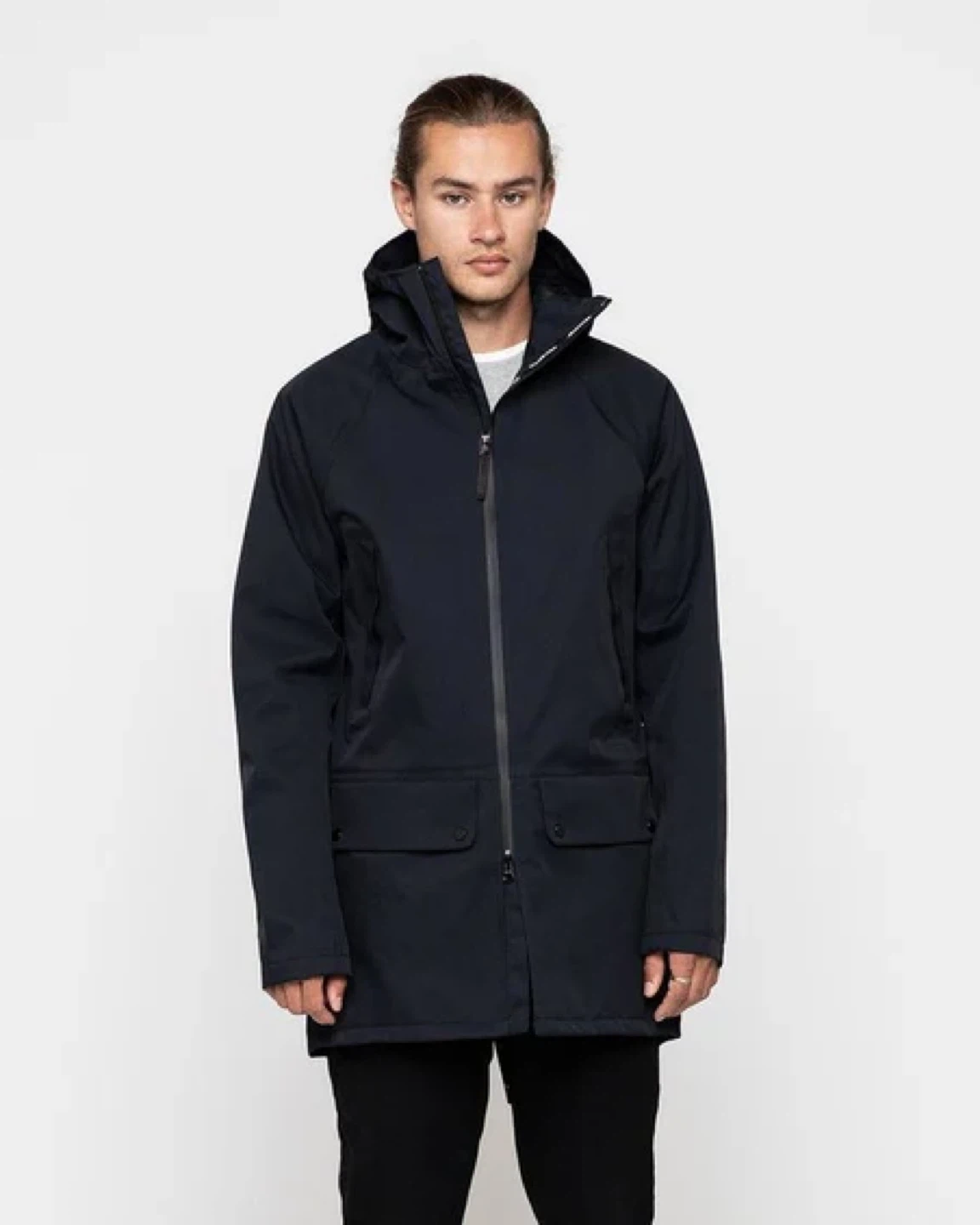 Minimalist, modern take on a parka. Breathable waterproof fabric, fully taped seams, waterproof front zipper, adjustable hood.