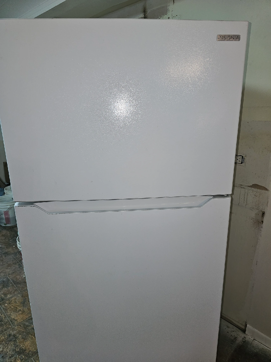 Selling an Insignia refrigerator in white. It's in good condition and ready for a new home! Perfect for a smaller space or as a second fridge
