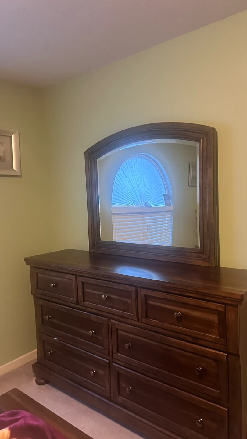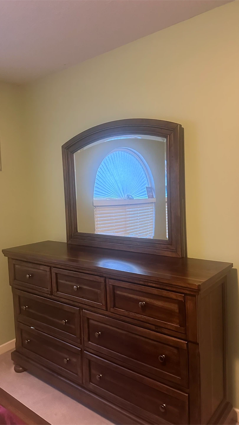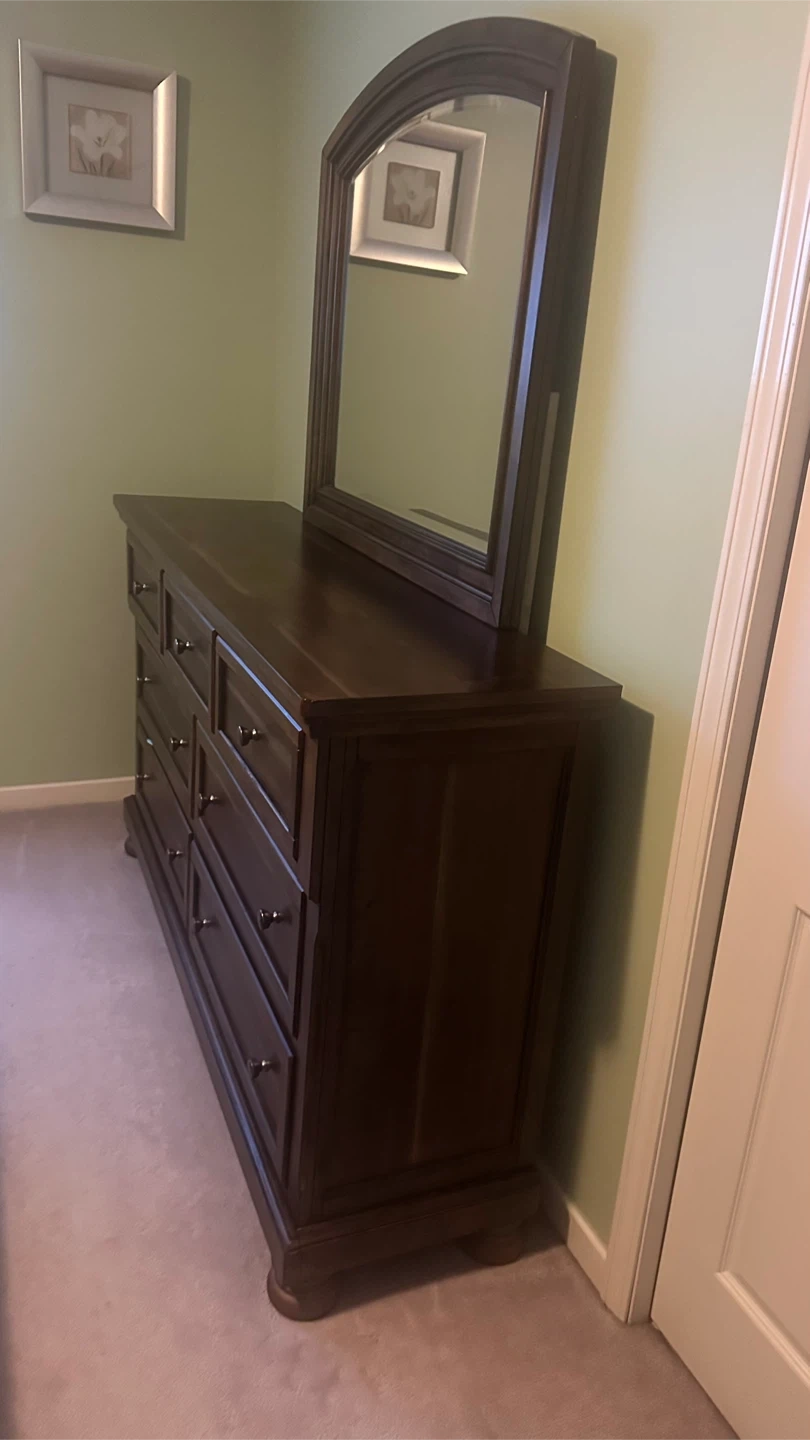 Buy & SellDark Wood Dresser with MirrorDark Wood Dresser with Mirror$183Dark wood dresser with a matching mirror. It has nine drawers for ample storage. Mirror is arched.ConditionNewWHERE TO MEETCheck LocationView MapSELLERHarpreetStrawberry Hill181 review2 chats·3 favorites·135 viewsSEND CHAT TO SELLERHi Harpreet! I’m interested in your listing.Hi Harpreet! I’m interested in your listing.Get the Karrot app to chatSign In to chat